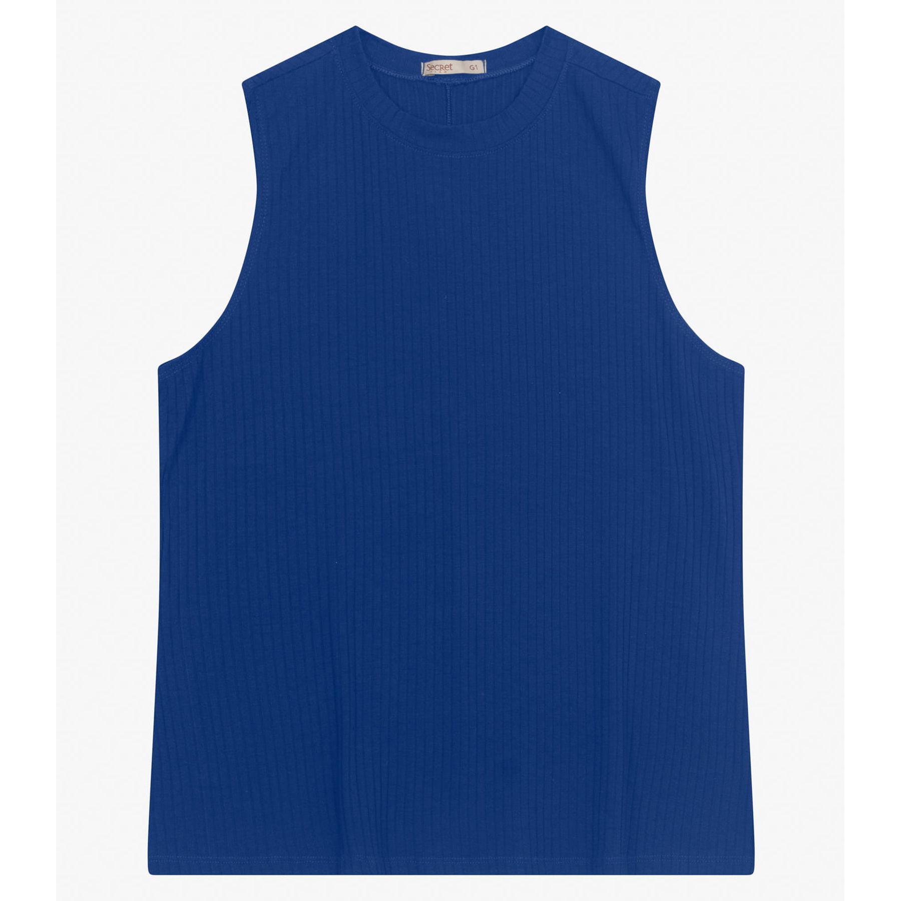 Regata Plus Size Em Ribana Canelada Secret Glam Azul