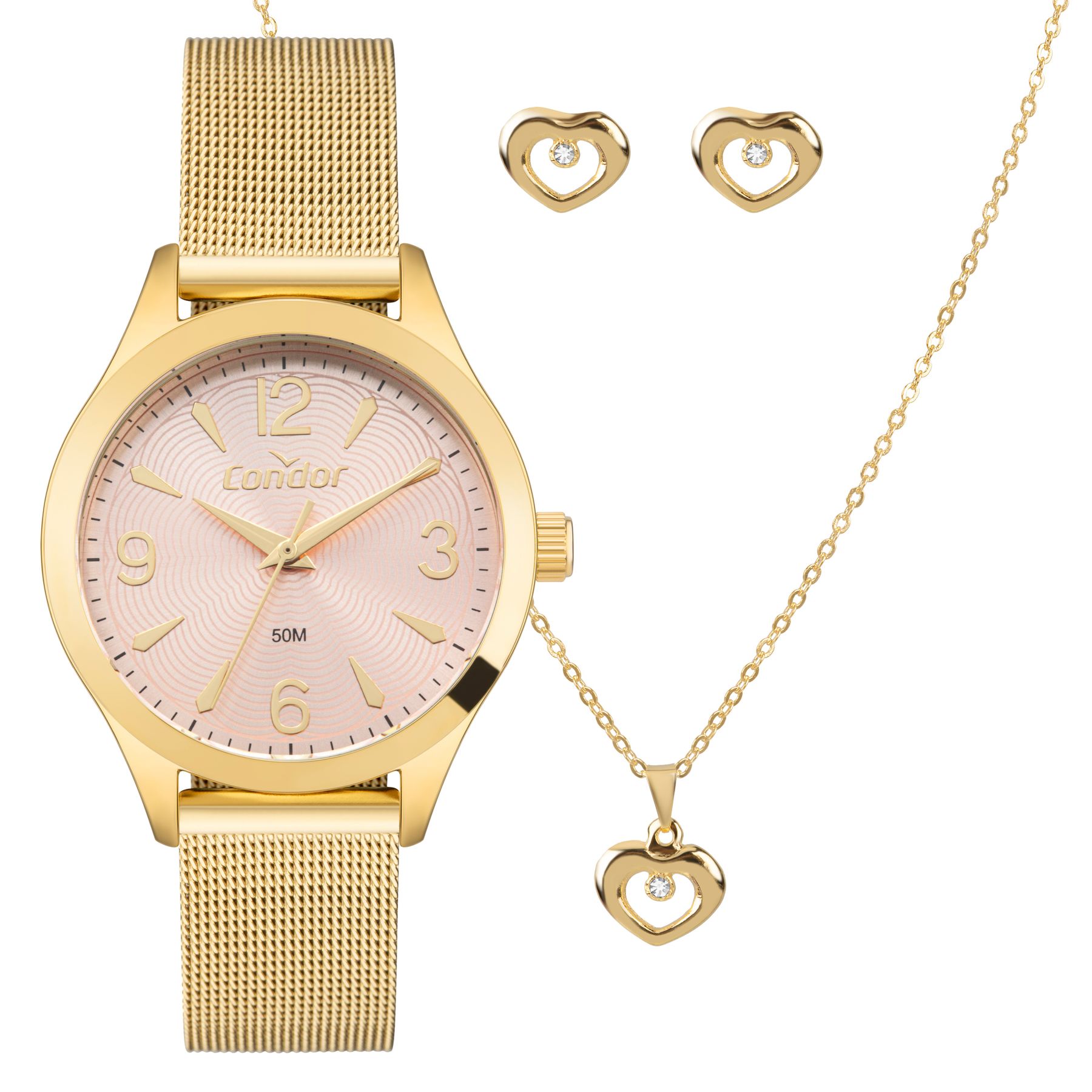 Versatilidade que acompanha a rotina. O kit Dia a Dia reúne praticidade e beleza em modelo com pulseira dourada em mesh, mostrador rosé com brilho e contador de minutos. Um presente pensado para quem vive o agora.