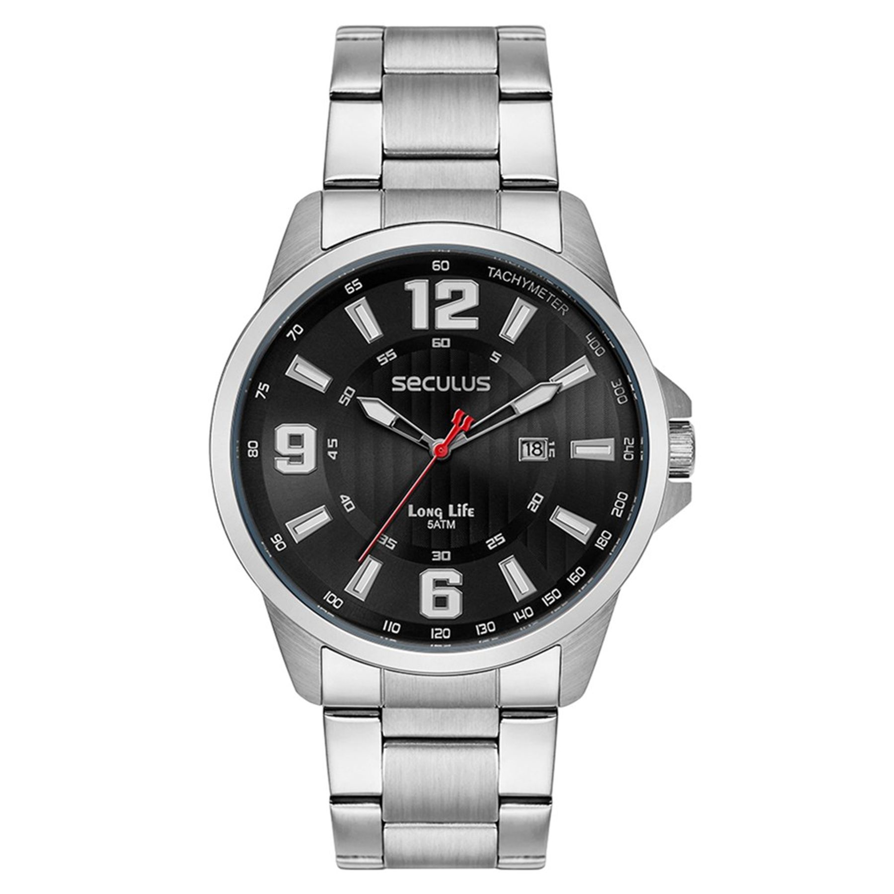 Relógio masculino prateado Seculus 5 ATM, com design moderno e estrutura resistente para o dia a dia.