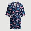 Roupão Feminino Curto com faixa Estampado Floral lavanda - Dohler