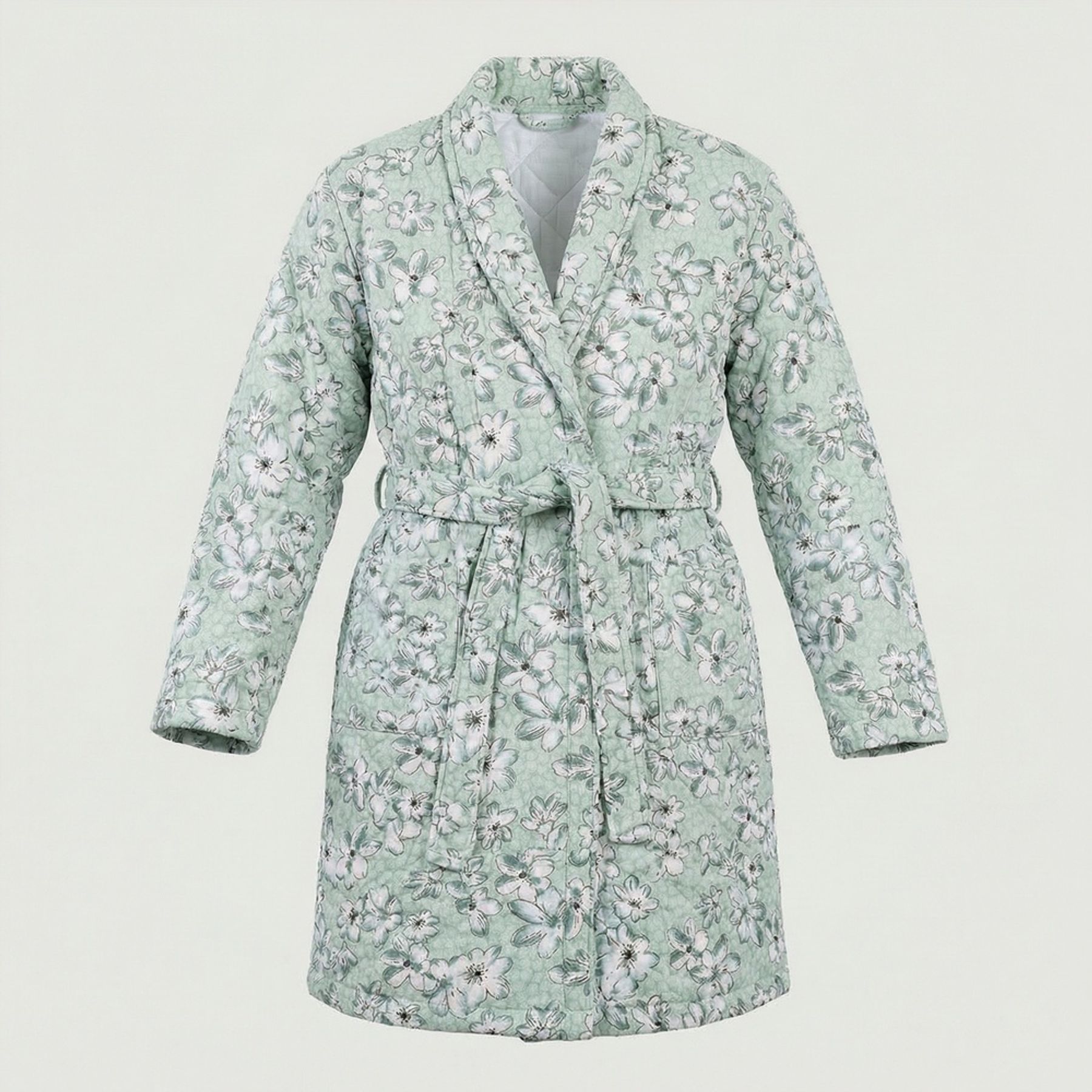 Roupão Feminino Pérola Estampado 100% Algodão Floral Verde - Dohler