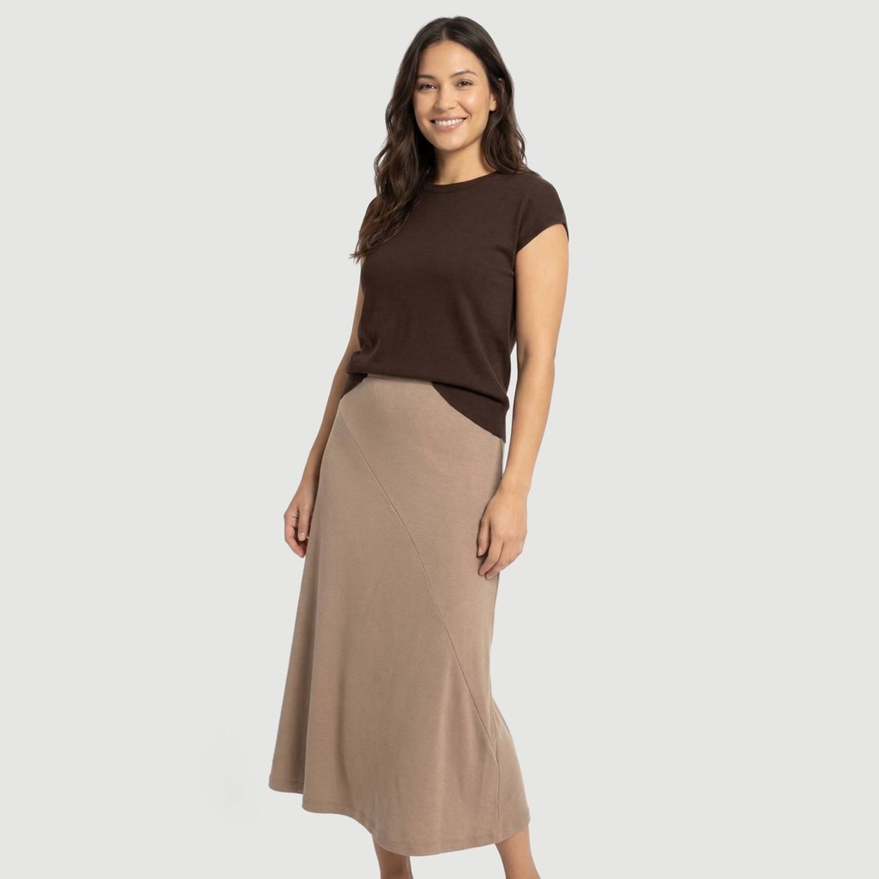 Saia Midi Viscose Khyara Feminina Endless Bege