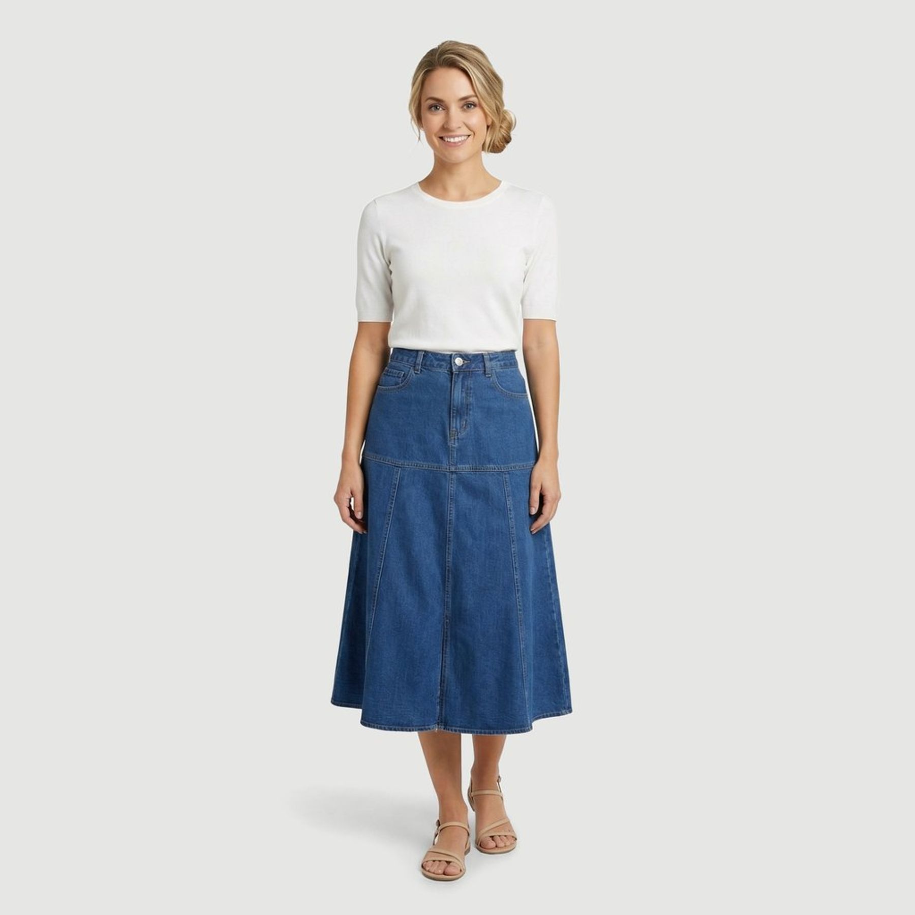 Saia Feminina Midi Fenda Frontal Jeans Azul - Ink