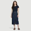 Saia Feminina Midi Fenda Frontal Jeans Azul - Ink