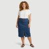 Saia Feminina Midi Jeans com Abertura Frontal e Cinto Azul Jeans - INK