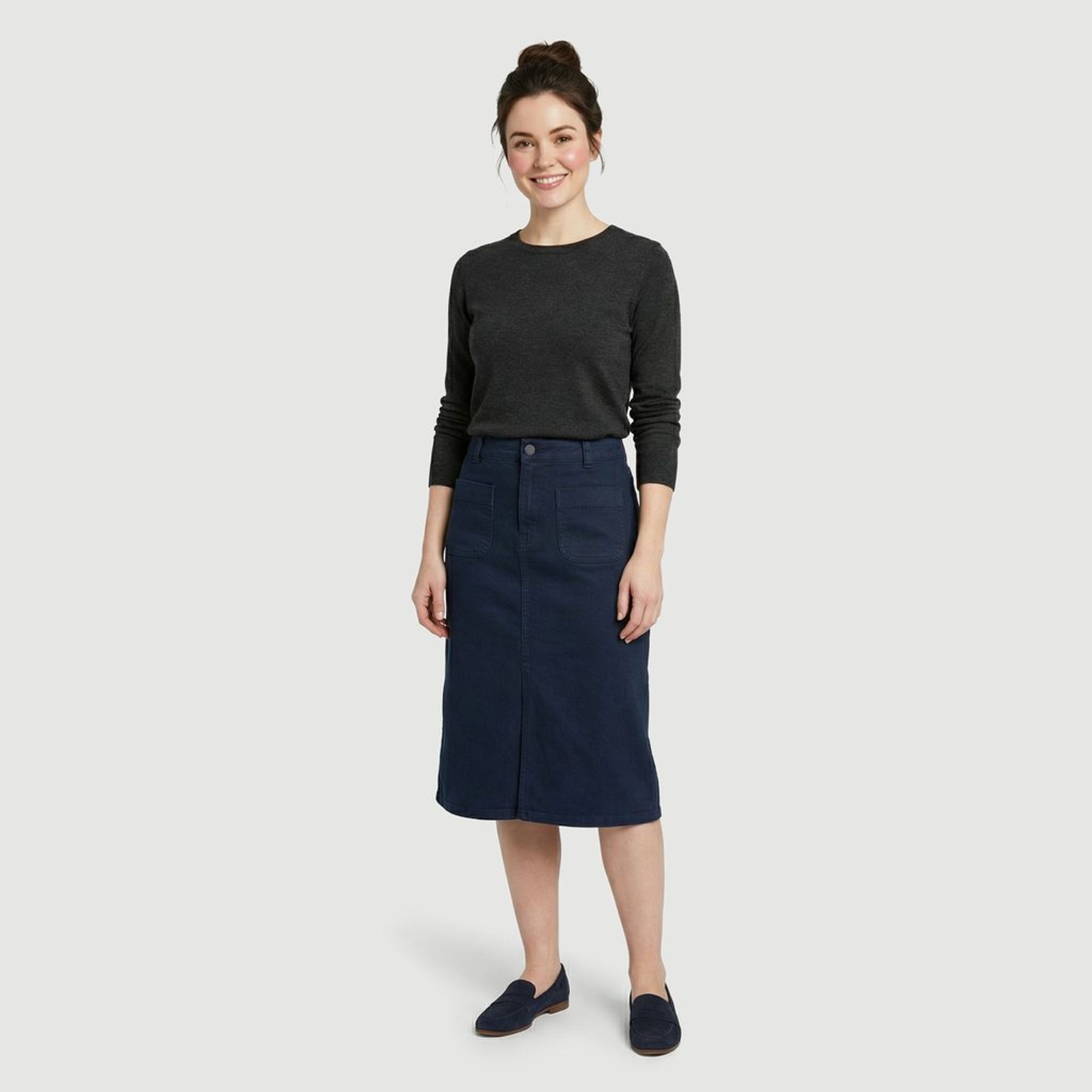 Saia Feminina Midi Fenda Frontal Jeans Azul - Ink