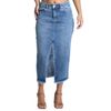 Saia Jeans Feminina Midi Botões Fenda Azul - Ink