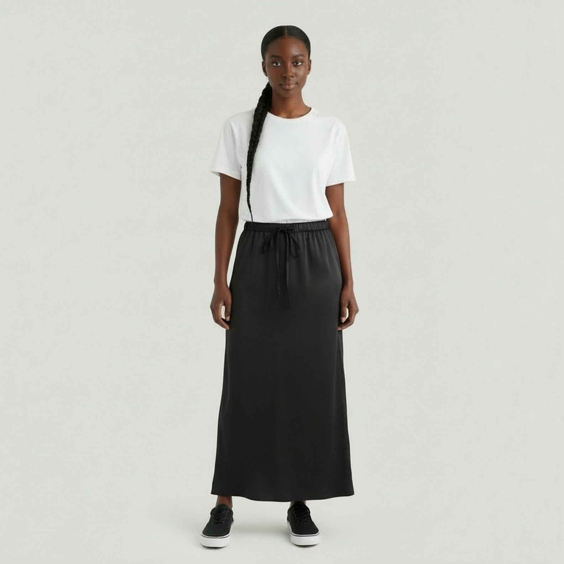 Economia de R$ 64,00A saia midi feminina confeccionada em cetim é ideal para quem valoriza um visual moderno e sofisticado. O tecido plano de poliéster confere um toque macio e acabamento refinado, enquanto o cós elástico proporciona maior praticidade. Versátil, a peça preta combina facilmente com diversas produções, tornando-se indispensável para o guarda-roupa da mulher jovem.