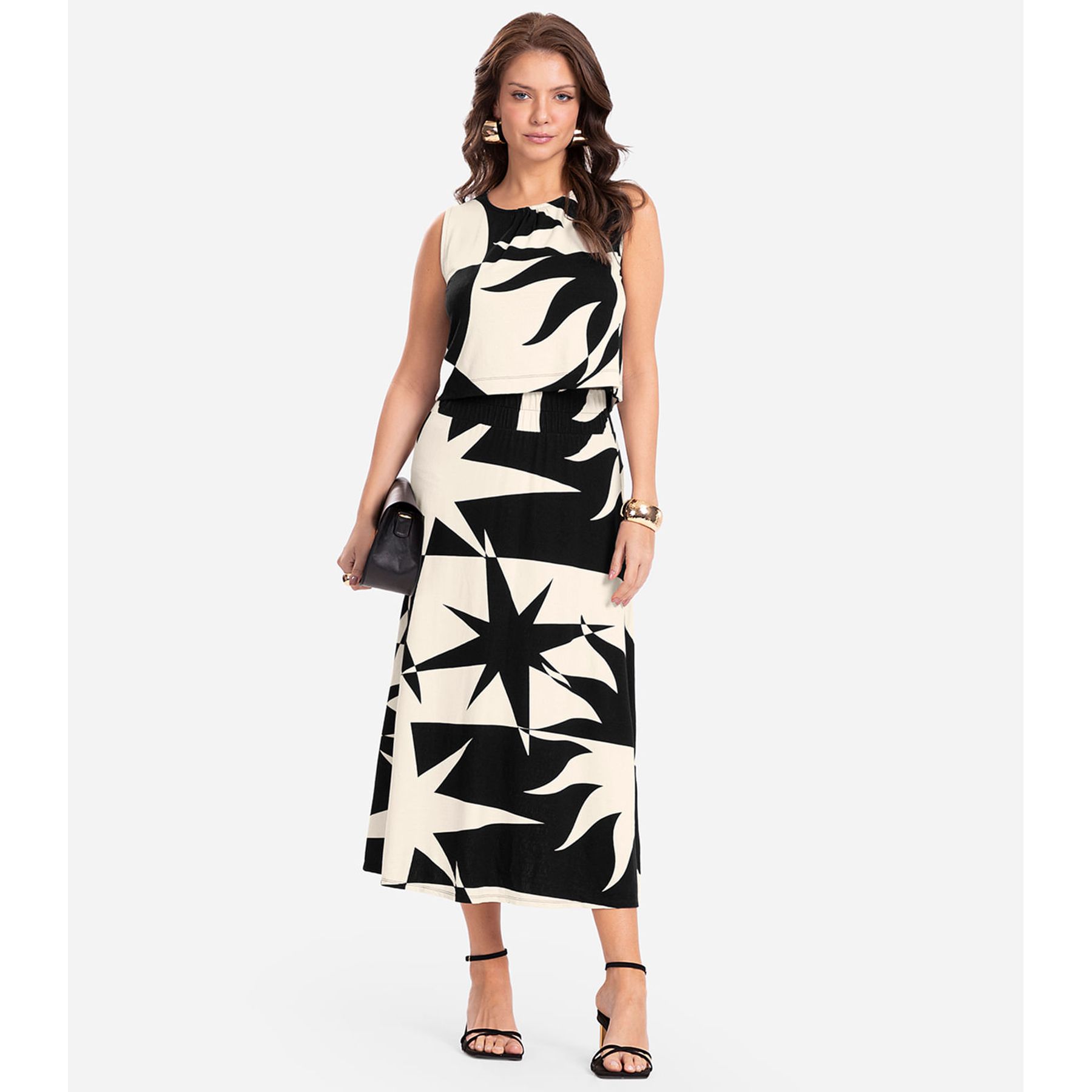 Saia Midi Feminina Evasê Plus Size Secret Glam Preto
