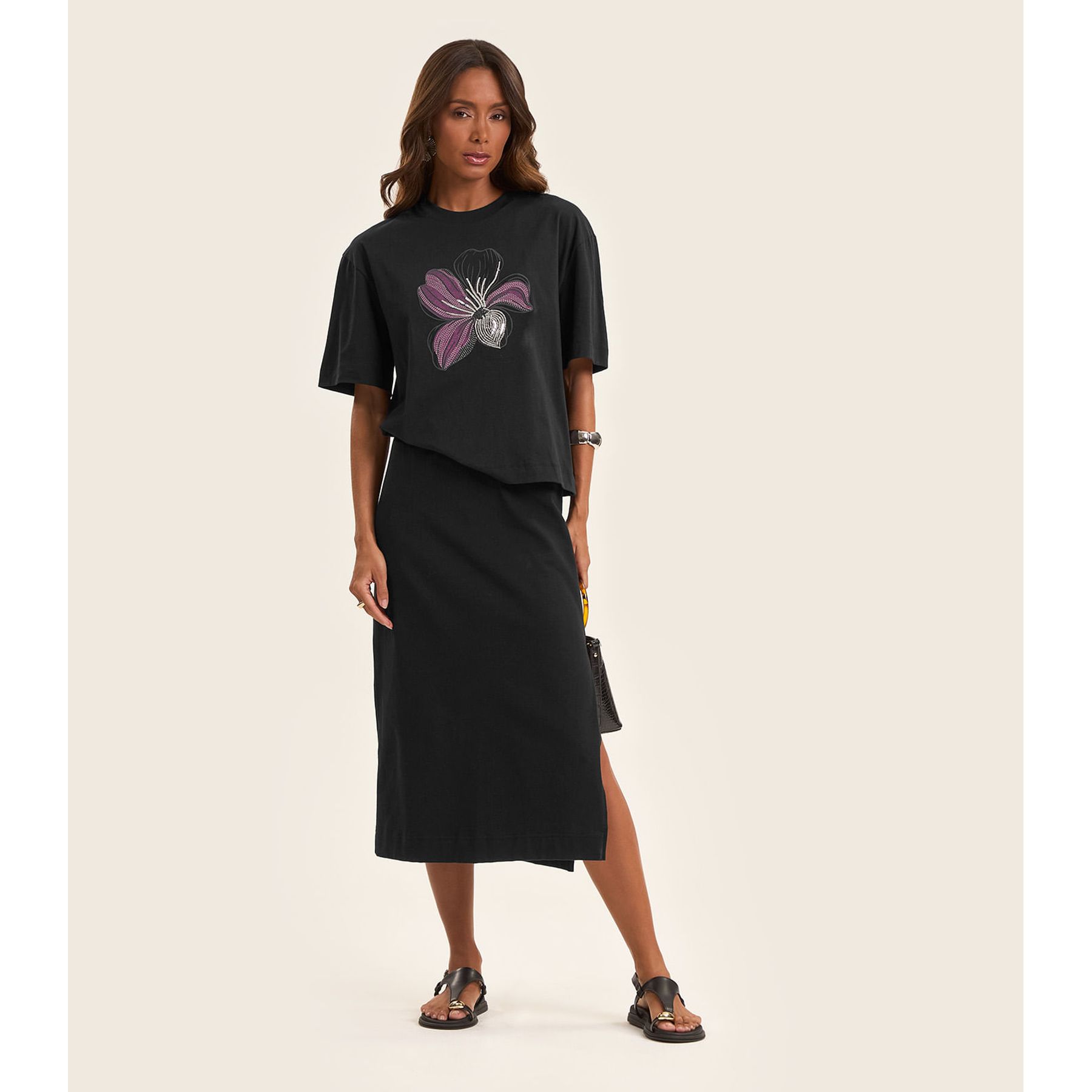 Saia Feminina Midi com Bordado Floral Bege - Viva