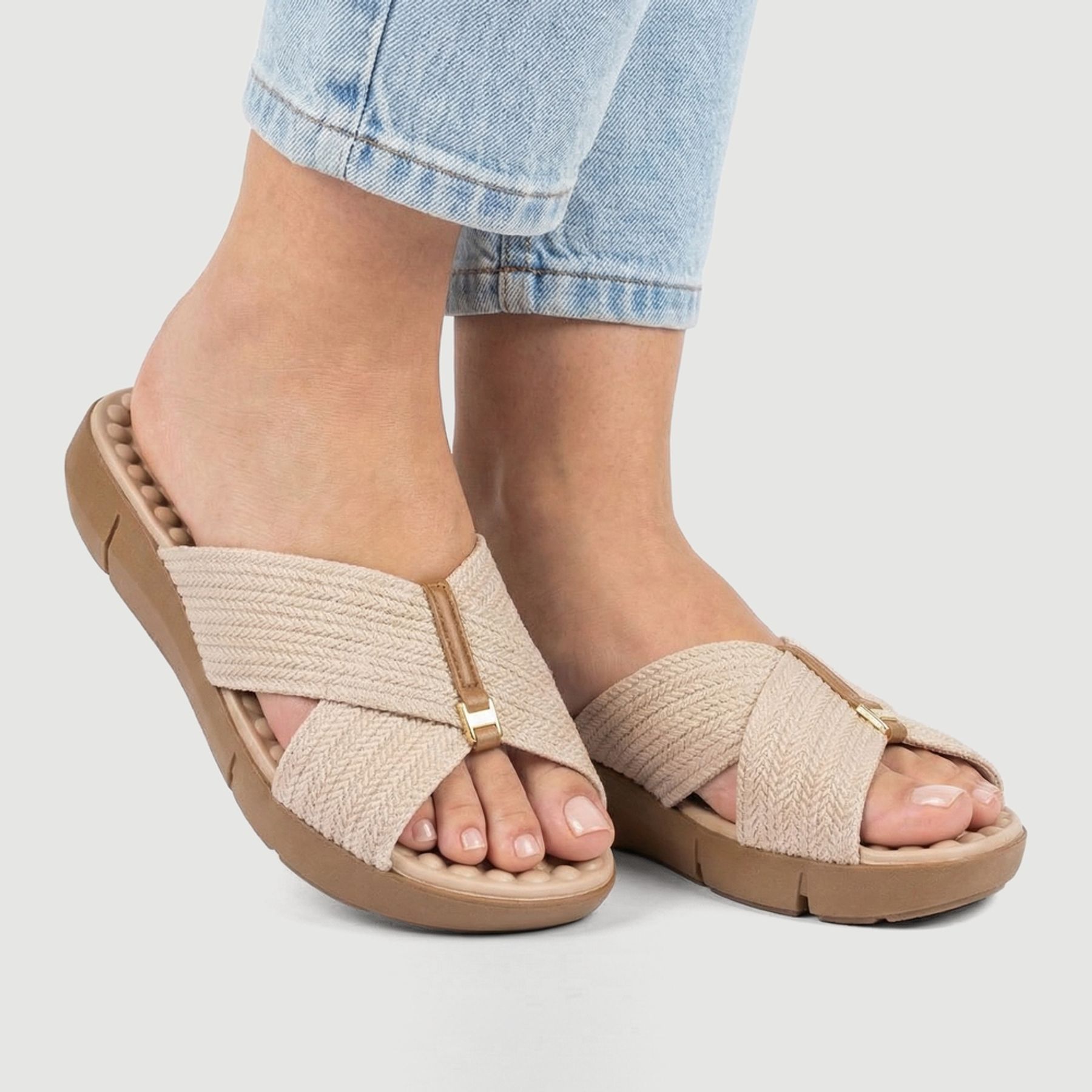 Sandália Slide Feminina Tiras Cruzadas Bege - Modare
