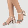 Sandália Feminina Salto Baixo Bloco com Brilho Creme - Vizzano