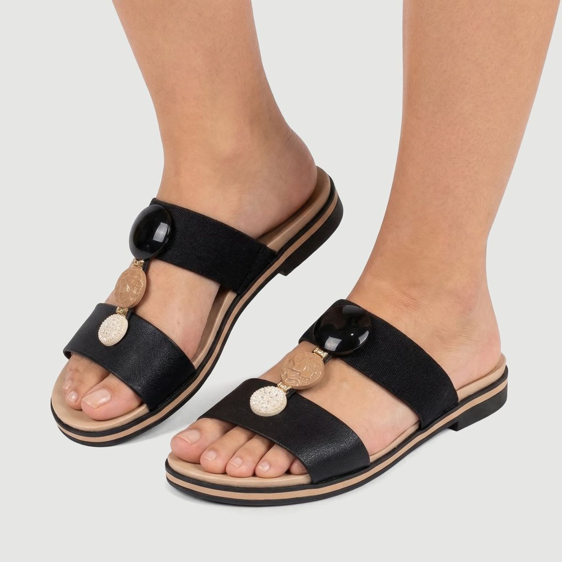 Sandália Feminina Slide com Detalhe Metálico Preta - Zaxy