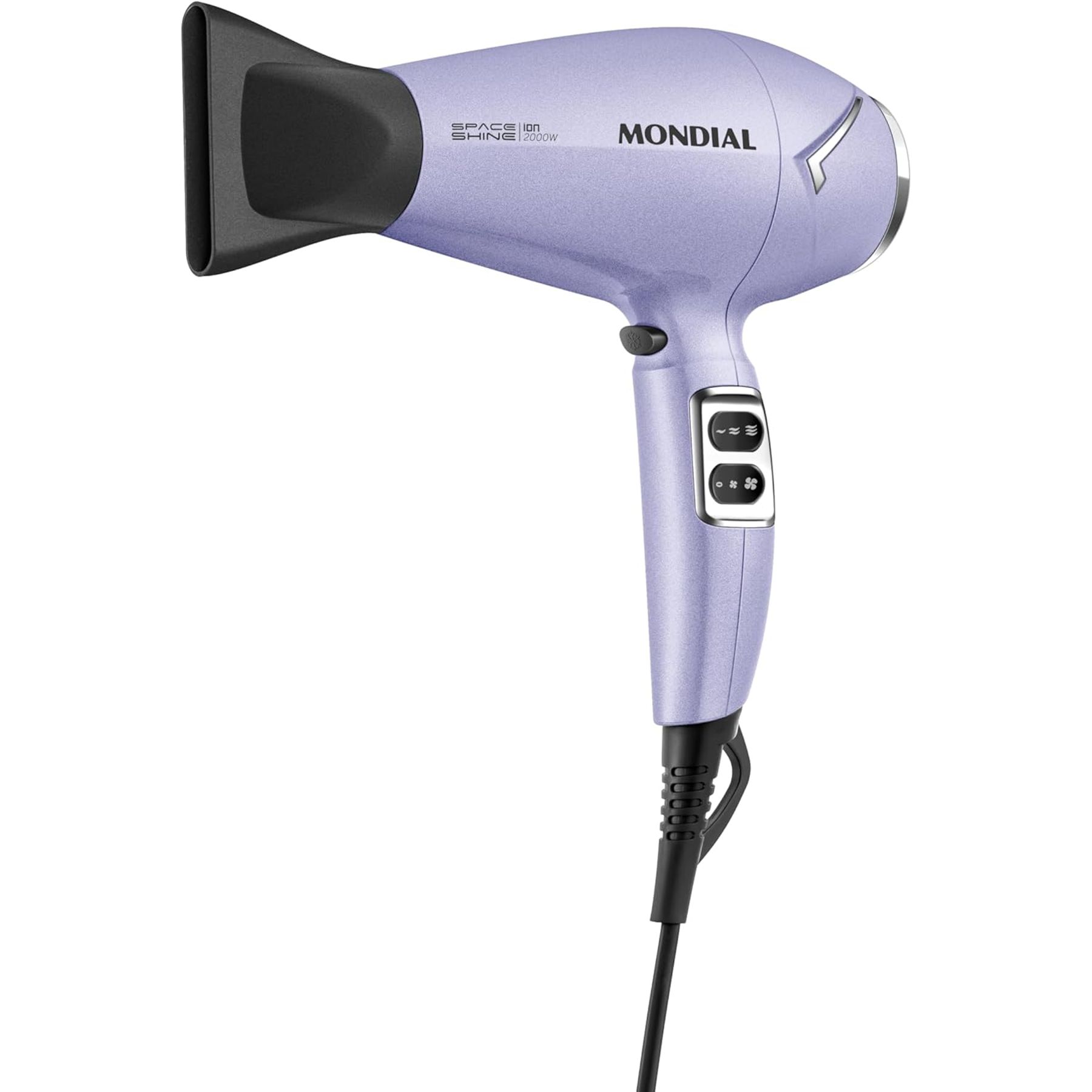 O Secador de Cabelos Space Shine Mondial é potente, com 2000W e 2 velocidades, ideal para uma secagem rápida e eficiente. Seu design lilás e leveza garantem conforto e praticidade no dia a dia.