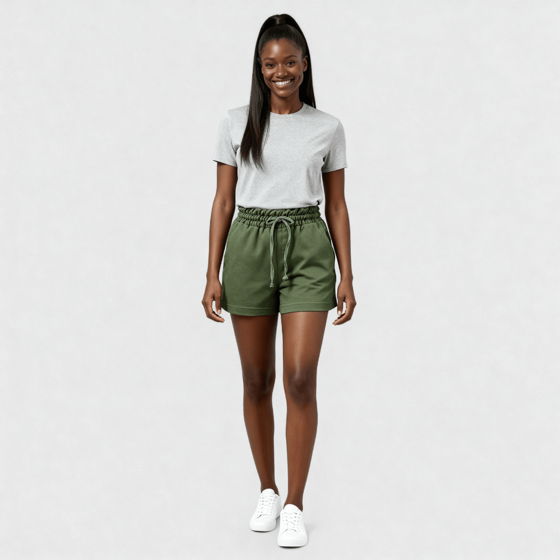 Bermuda Feminina Curta com Recortes Canelados Cintura Alta Lisa Verde Militar - Del Rio