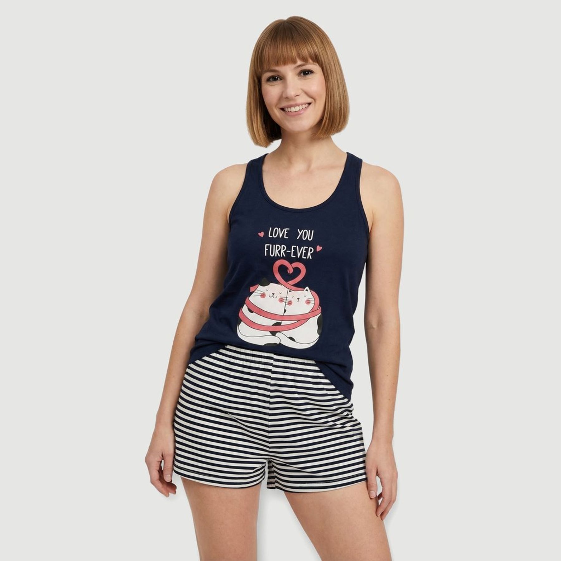 Pijama Fem Manga Curta Calça Marinha Azul - Uniq