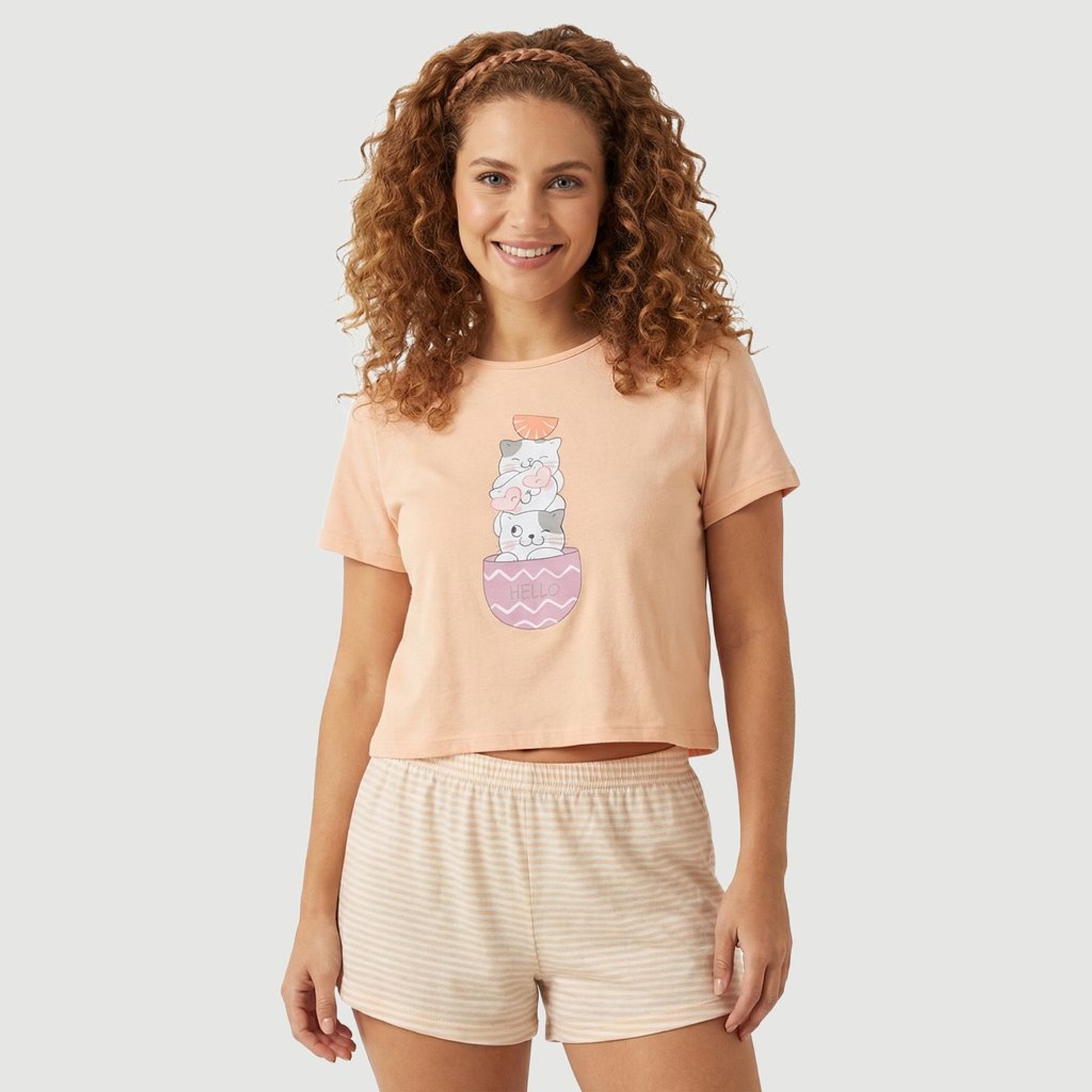 Pijama Feminino Short Doll Listrado Rosa - Disney