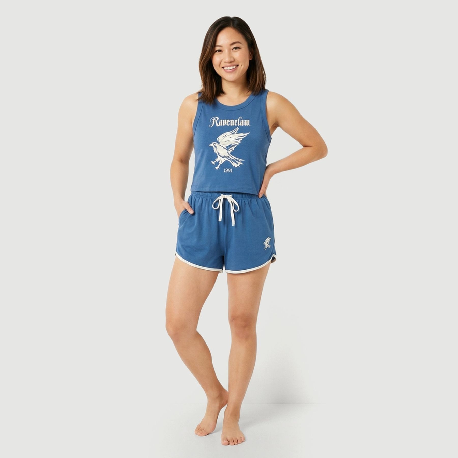 Pijama Fem Manga Curta Calça Marinha Azul - Uniq