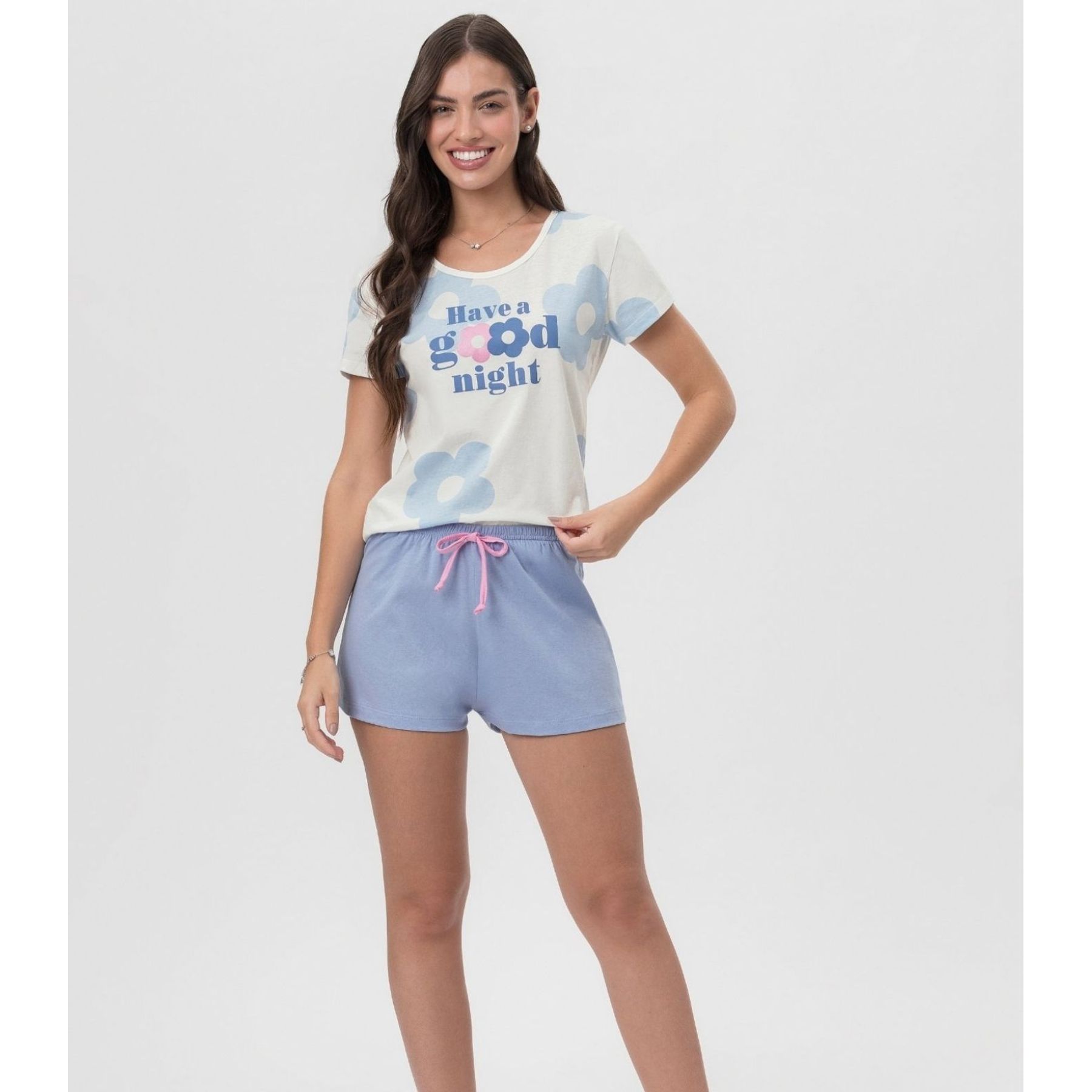 Short Doll Feminino Estampado Mensageira Da Paz Azul