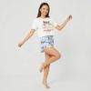 Economia de R$ 8,00Short doll Hello Kitty com blusa fit cropped em meia malha.Visual jovem e confortável para o descanso.
