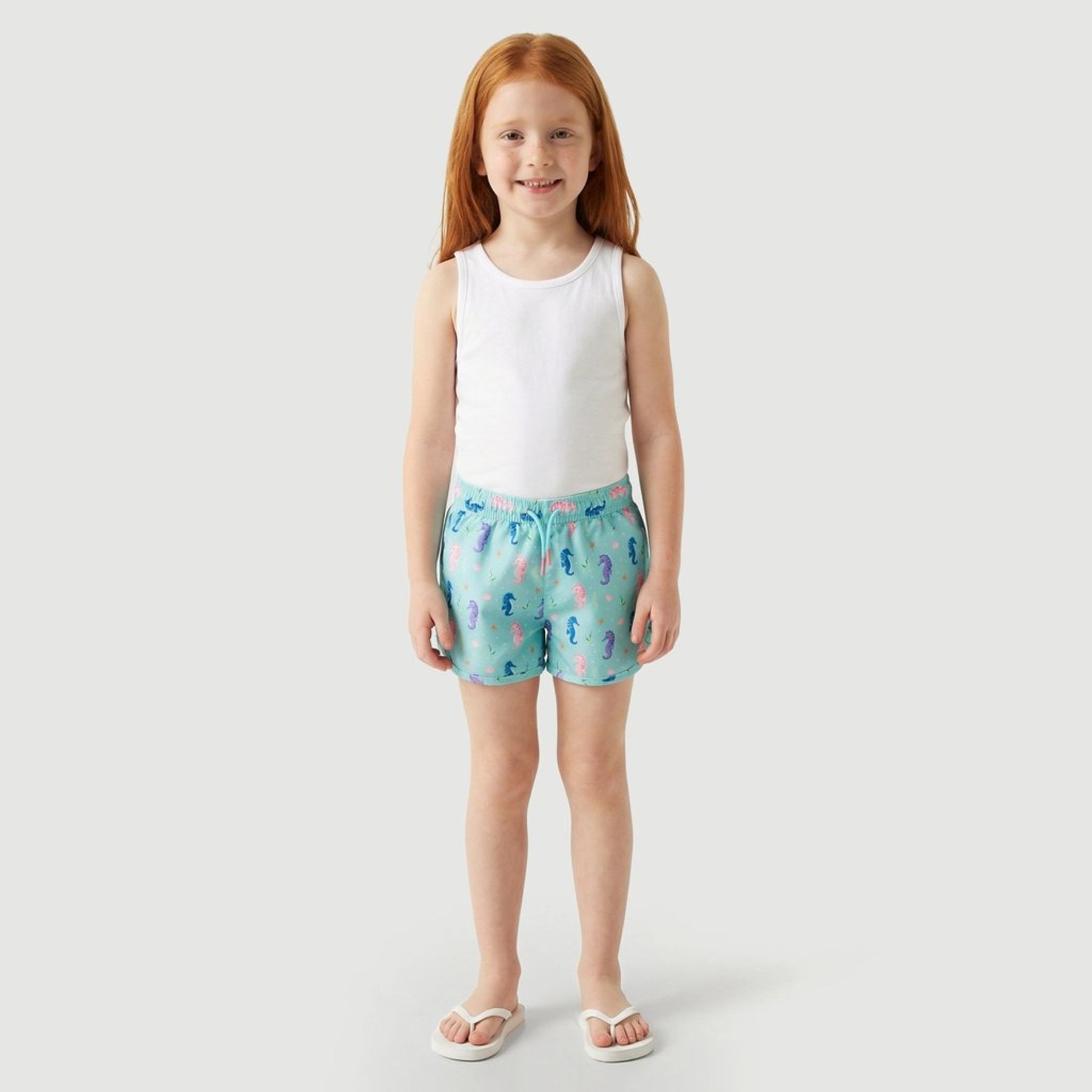 Economia de R$ 4,00Short feminino Yeapp com modelagem curta e estampa de cavalo-marinho em base azul, com elementos do fundo do mar em tons de rosa, roxo e azul. Confeccionado em tecido misto com predominância de poliéster, é uma peça prática para compor produções leves. Possui cós elástico e cordão de ajuste com ponteiras, além de barra arredondada e acabamento com viés nas laterais.