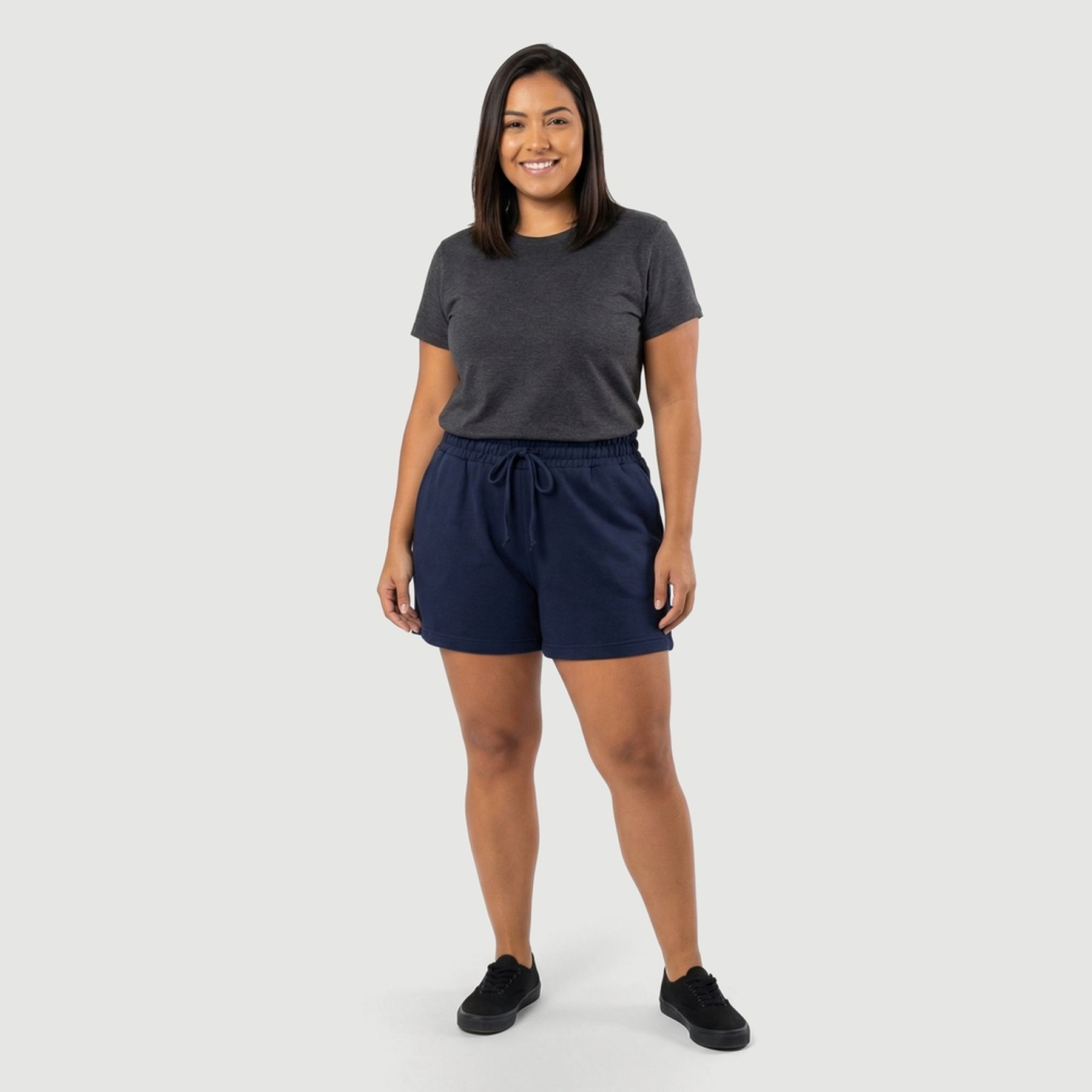Economia de R$ 7,00O short feminino Viva Plus em moletinho liso na cor azul marinho é uma opção prática para compor produções versáteis. A modelagem soltinha facilita as combinações com camisetas, regatas e blusas leves.