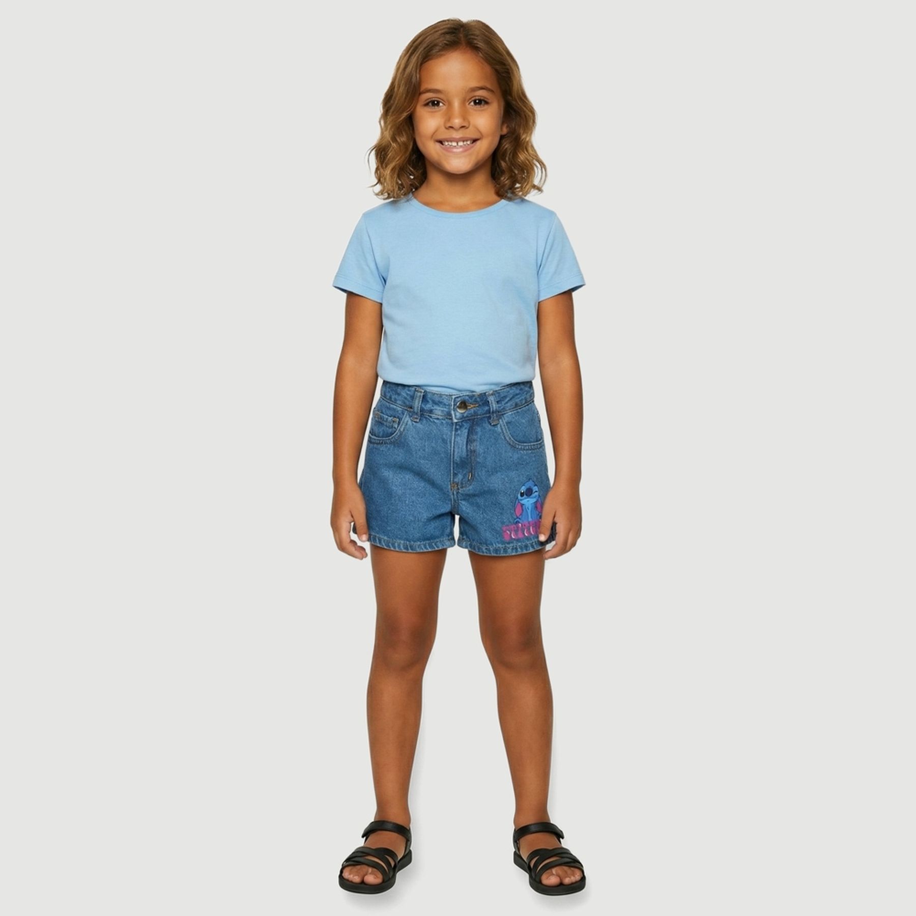 Economia de R$ 10,00O short jeans mom Ink traz um toque divertido com estampa localizada do Stitch com escrita na parte frontal. Confeccionado em 100% algodão, tem tecido encorpado e confortável para compor looks descontraídos.