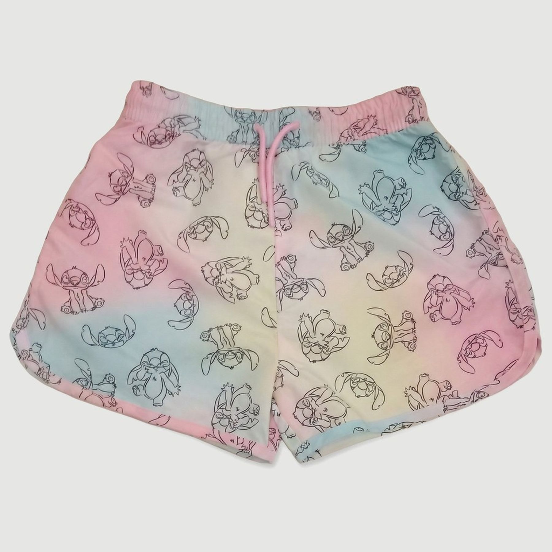 O modelo possui cós com elástico e cordão de ajuste frontal para melhor adaptação ao corpo, além de barra arredondada nas laterais, perfeita para produções práticas e descontraídas. Produto licenciado Lilo & Stitch.