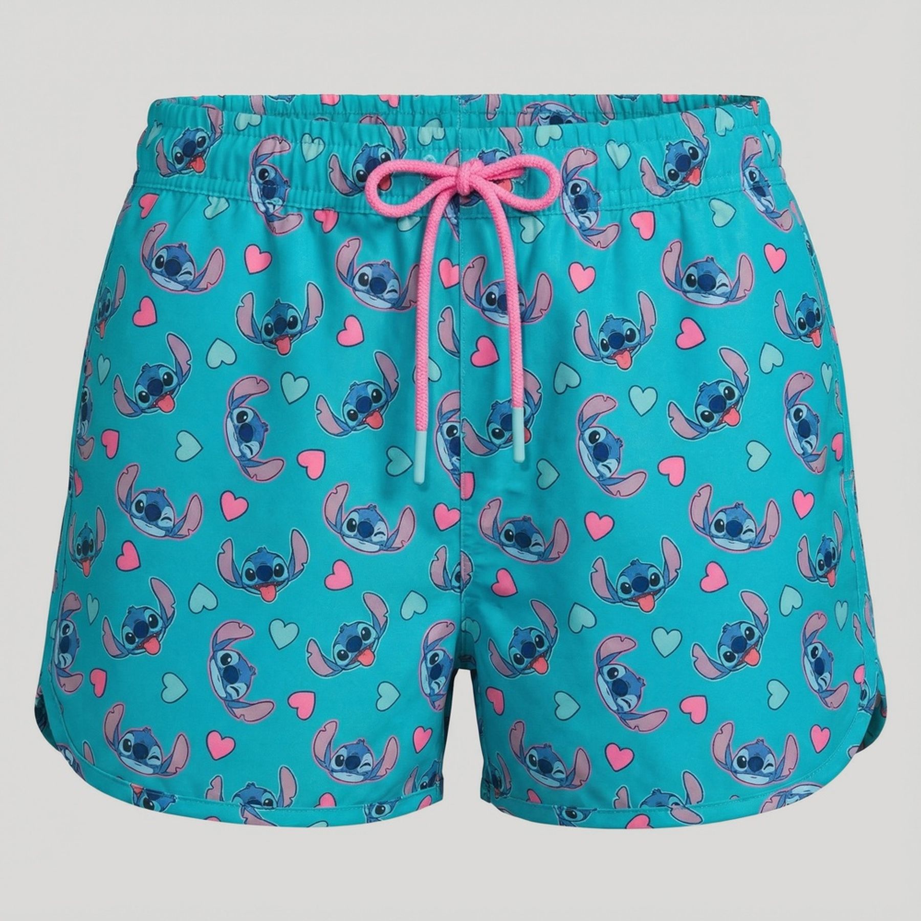 Economia de R$ 10,00O short feminino Disney com estampa total do Stitch e pequenos corações traz um visual divertido para compor looks de verão. Confeccionado em tecido sintético de composição mista com predominância de poliéster, tem toque leve e caimento prático. O cós com elástico e o cordão rosa ajudam a ajustar a peça ao corpo, enquanto a barra arredondada finaliza o design com um ar moderno.