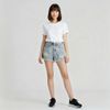 Short Jeans Feminino Barra Desfiada com Abertura Azul Claro - Ink