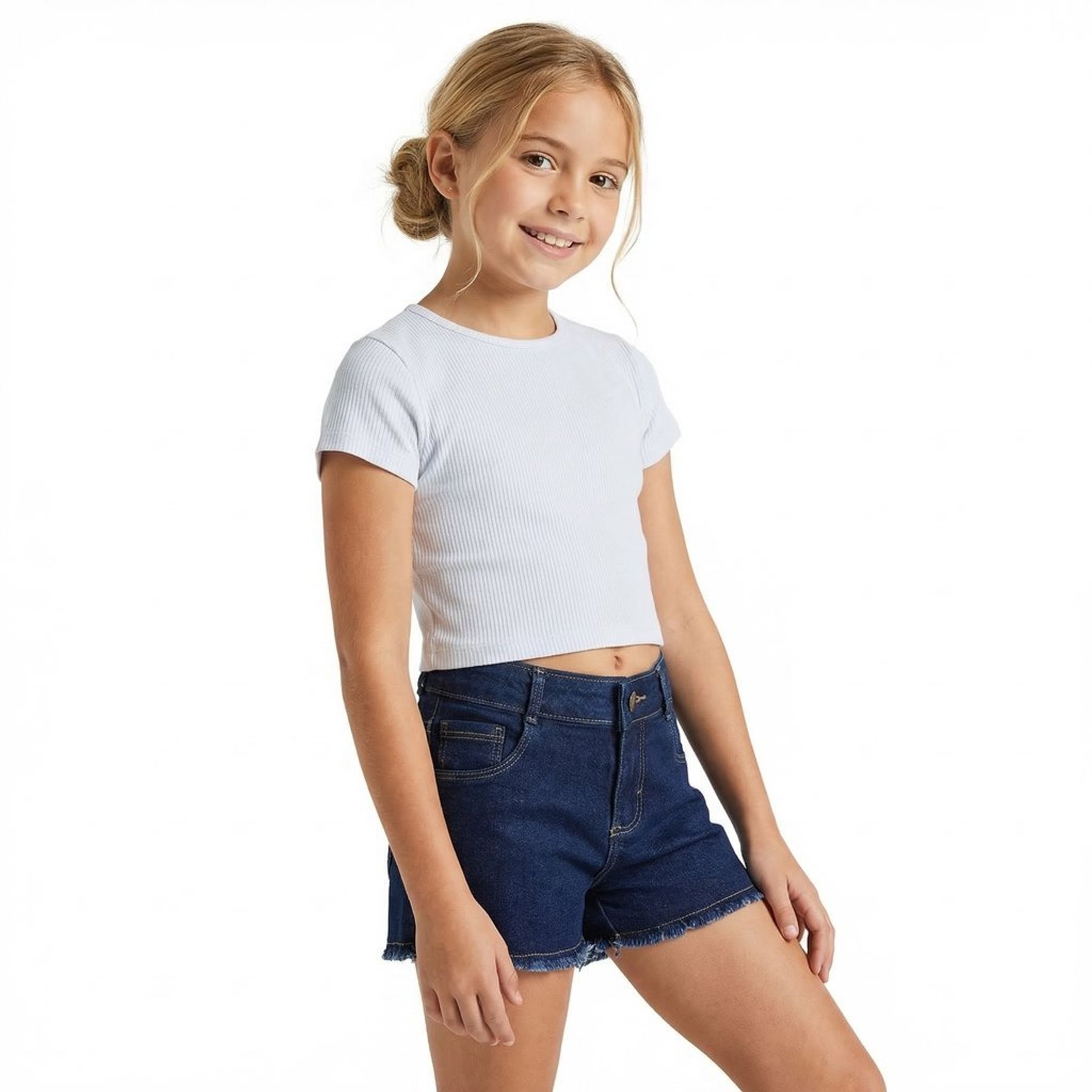 Short Clochard Infantil De Malha Texturizada com Cintura Elástica Liso Creme - Yeapp