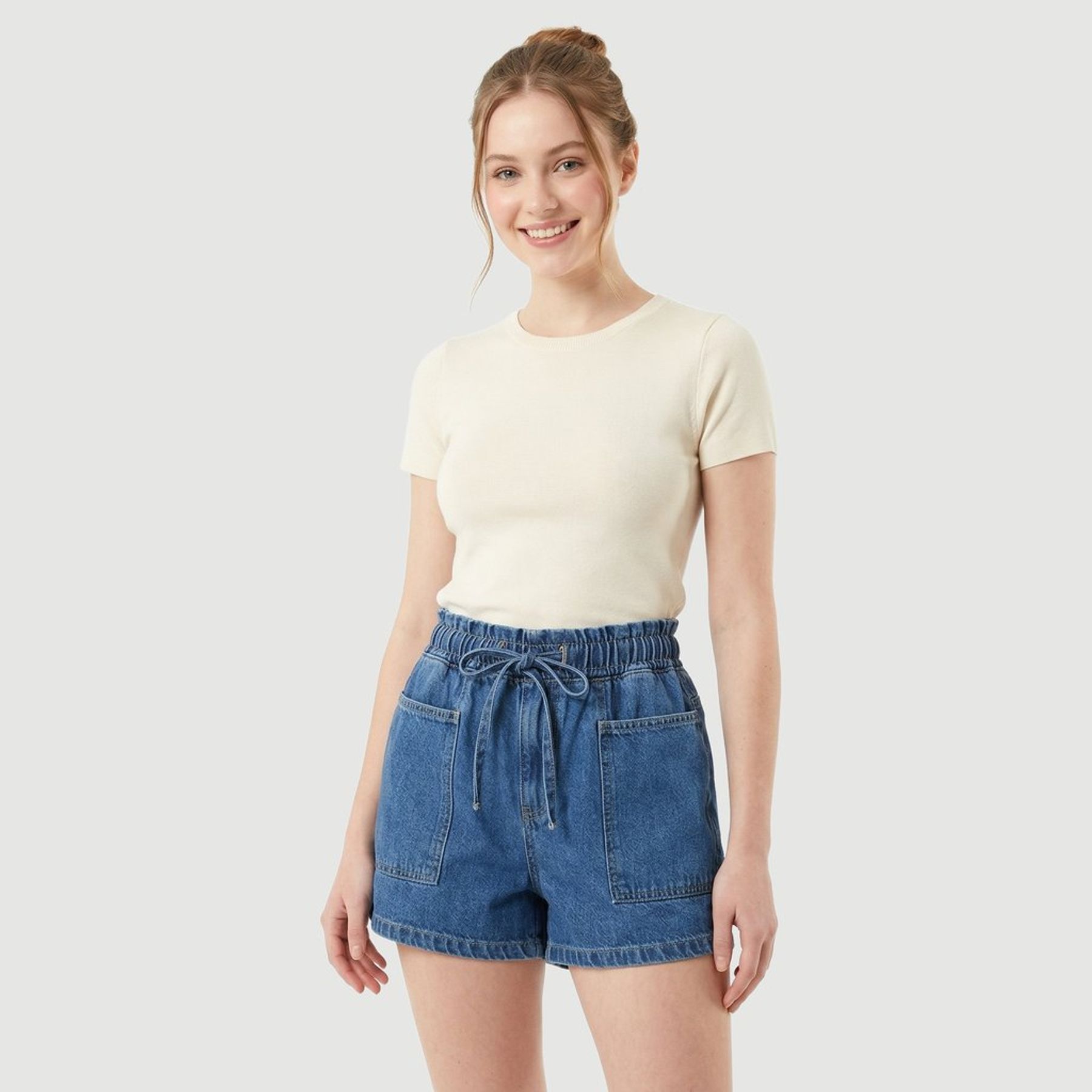 Short Feminino Com Cós E Laço Infinita Cor Rosa