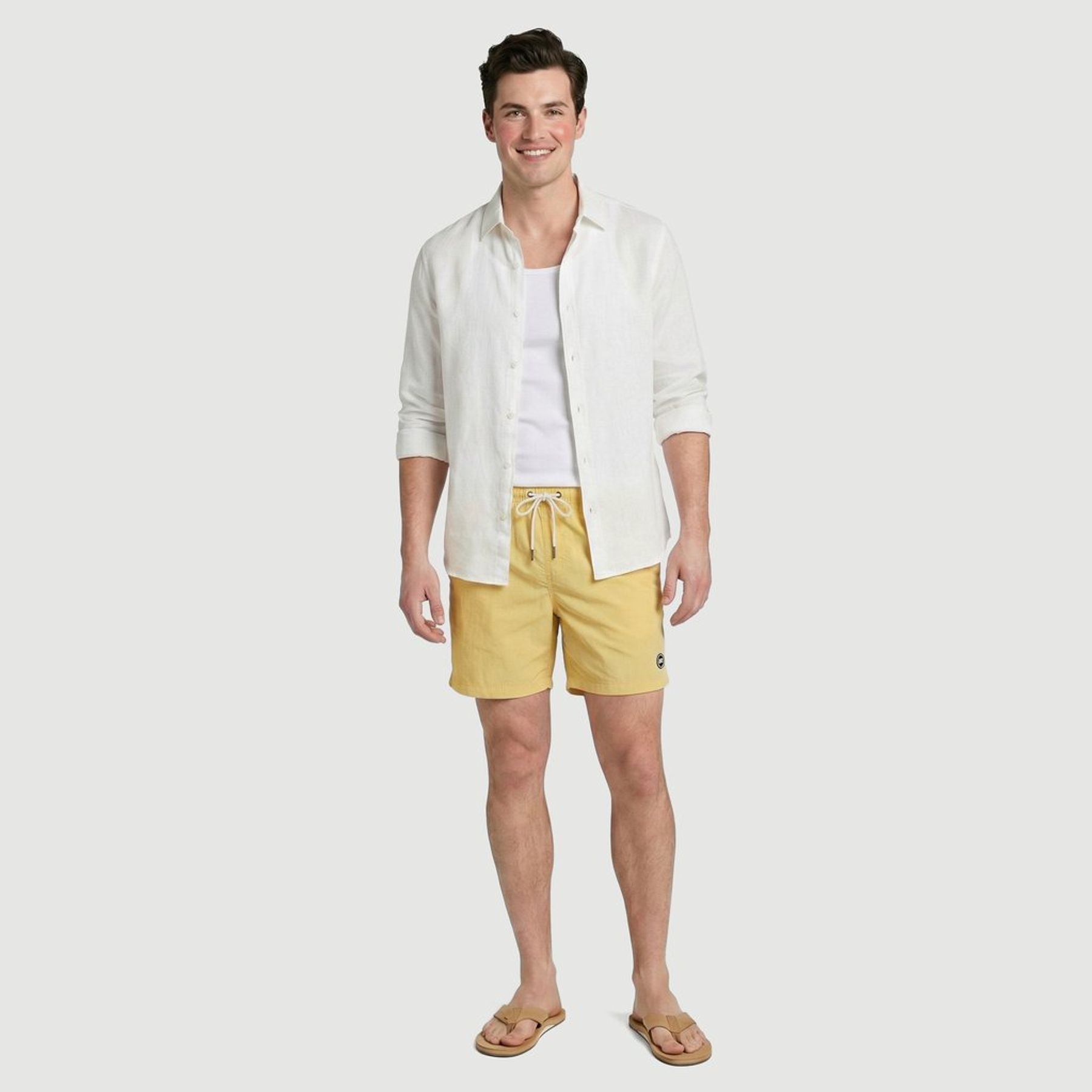 Short Praia Masc Forro Interno Amarelo Liso - Id Praia
