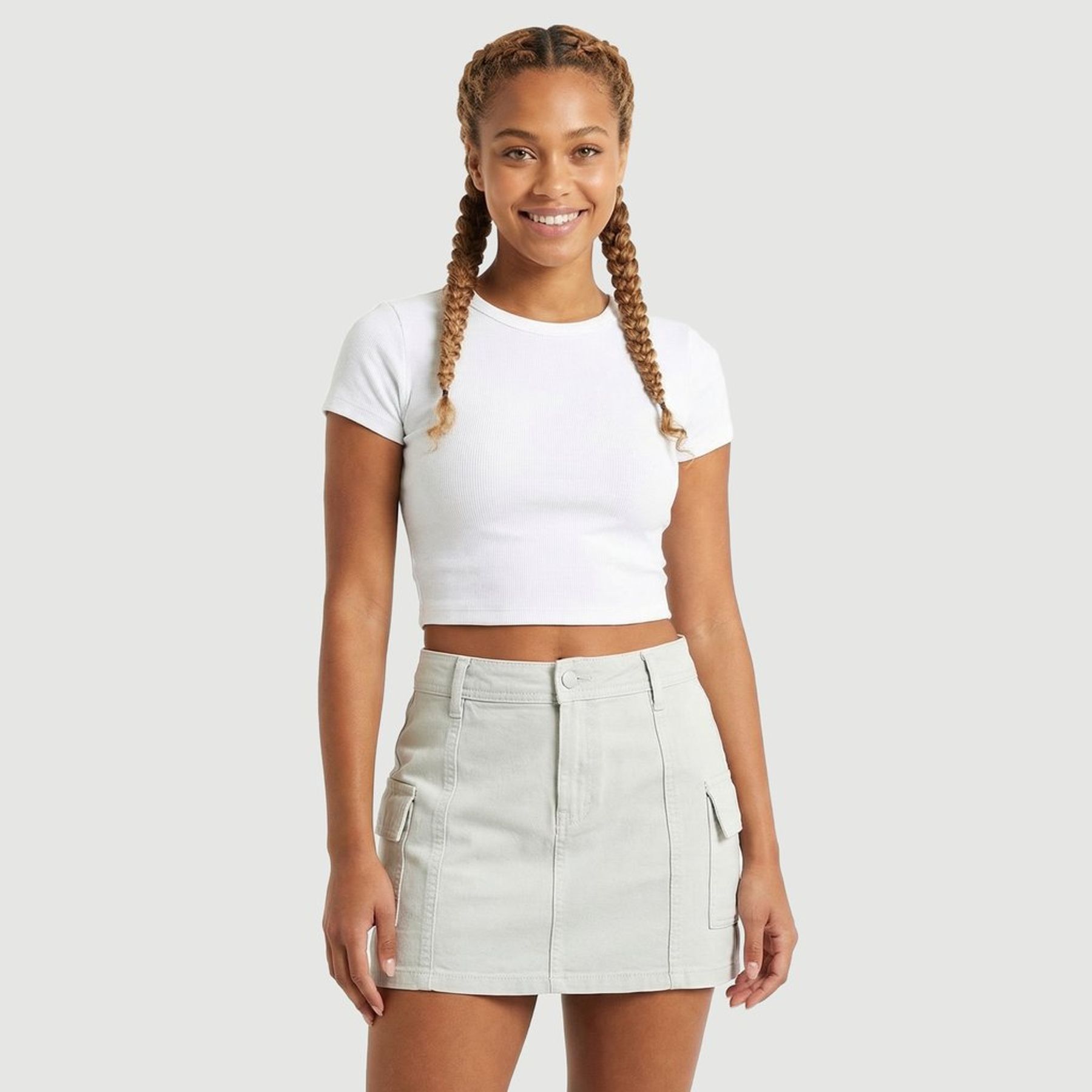 Short-saia feminino bolso carpinteiro creme - Ink