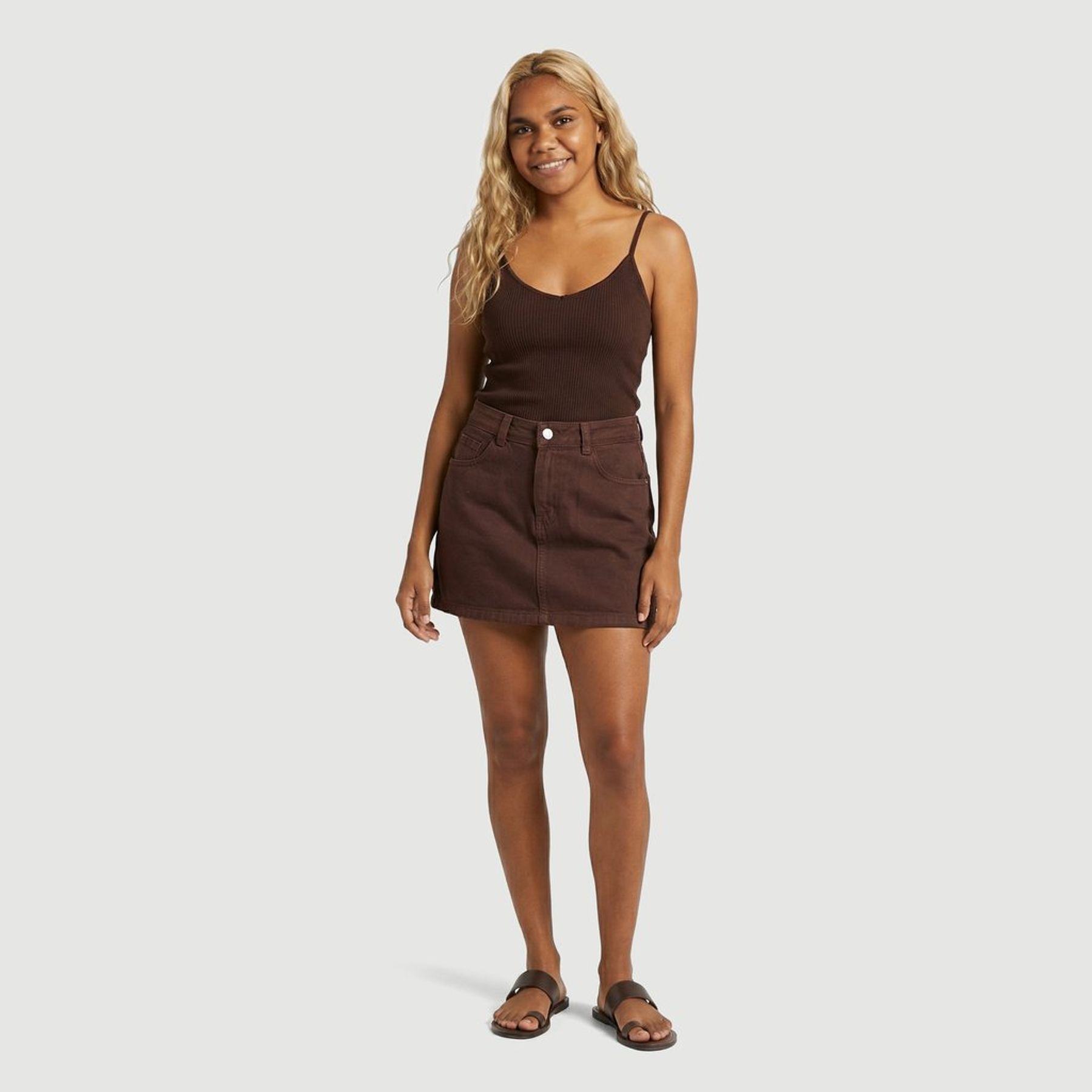 Saia Feminino Marrom Liso Ink