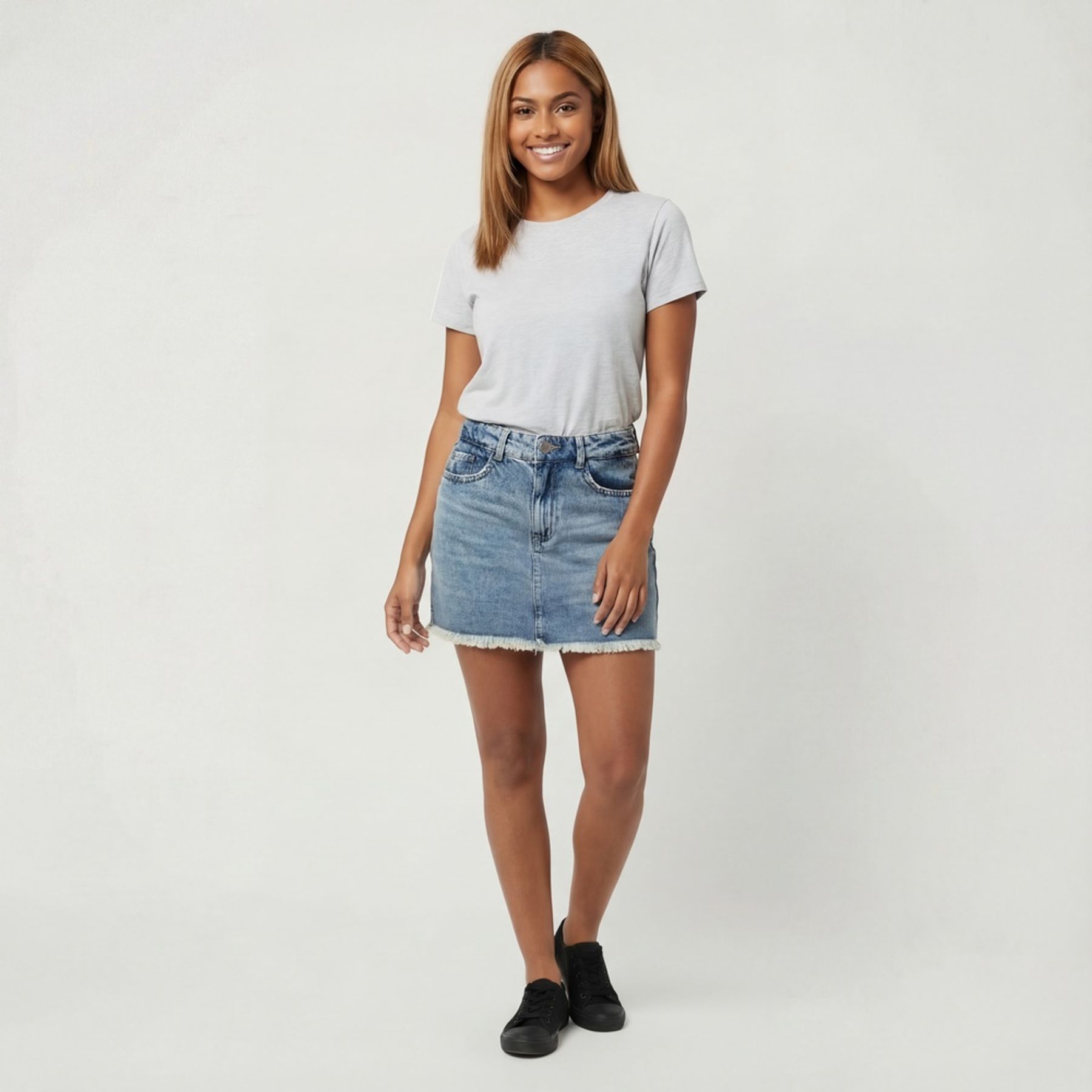 Economia de R$ 12,00Short saia jeans INK com barra desfiada e visual clássico.ideal para looks confortáveis e modernos.