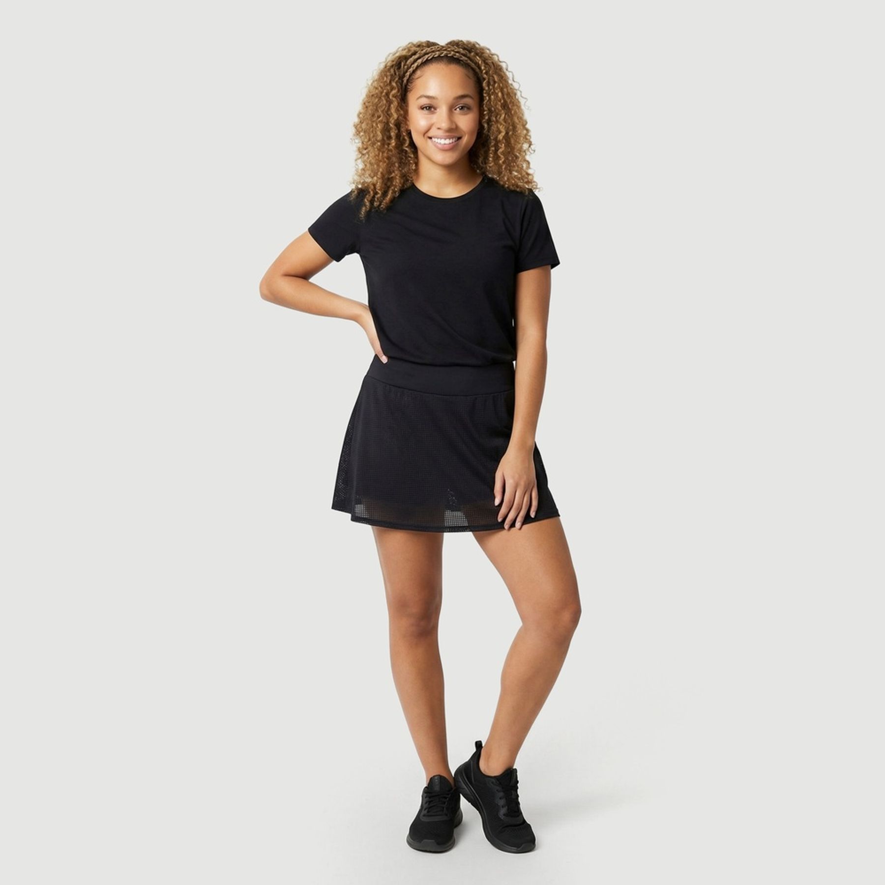 O cós largo ajuda no ajuste ao corpo, enquanto a modelagem tipo saia com corte evasê oferece caimento solto e liberdade para se exercitar. Confeccionado em composição mista (50% poliéster e 50% poliamida), entrega conforto e desempenho para a rotina ativa.