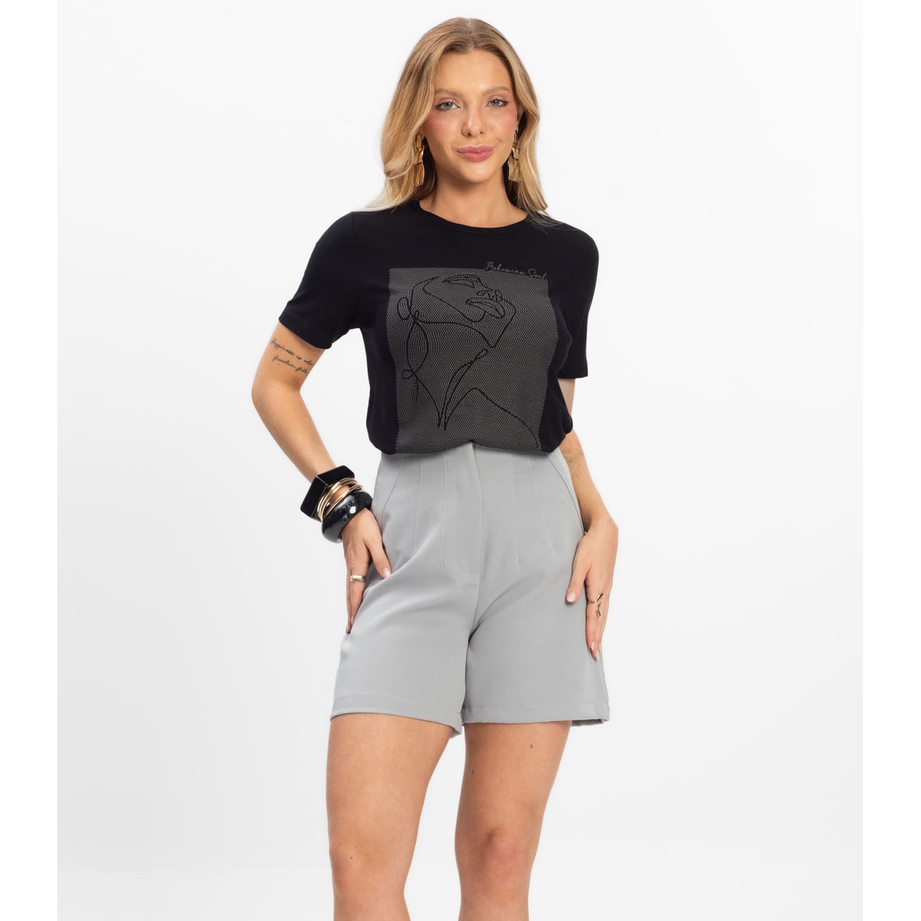 Shorts Feminino Cós Alto Em Alfaiataria Dianna Cinza