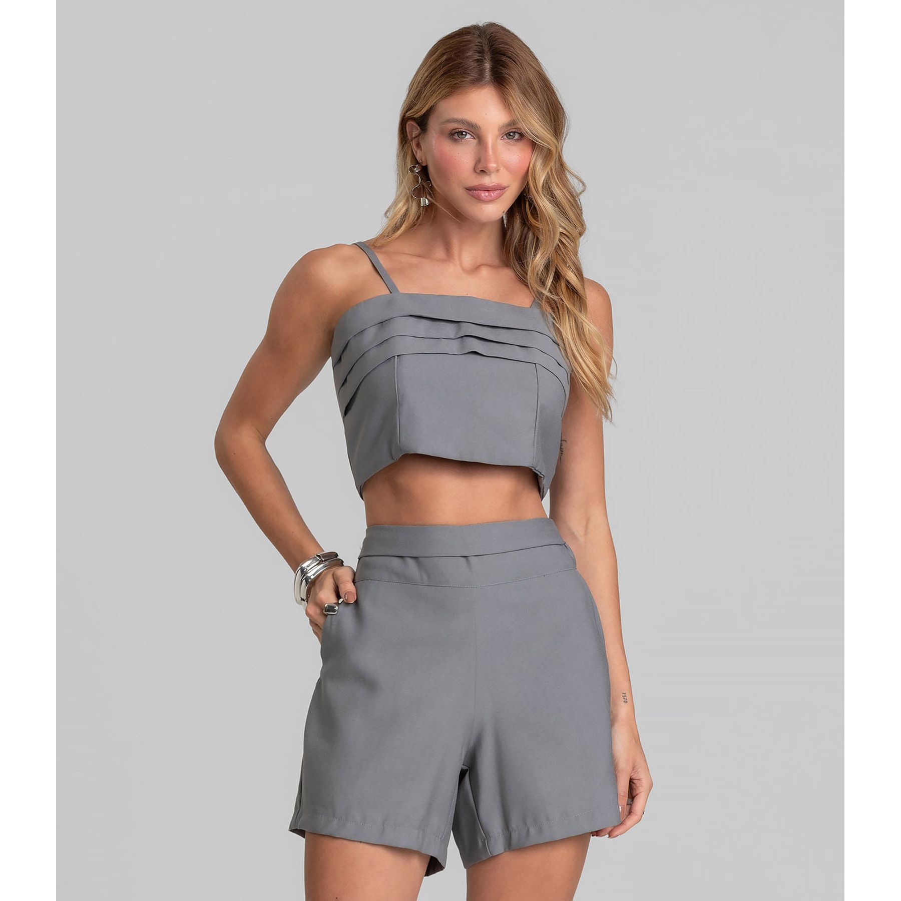 Short Feminino Curto Liso Cinza Claro - Norton