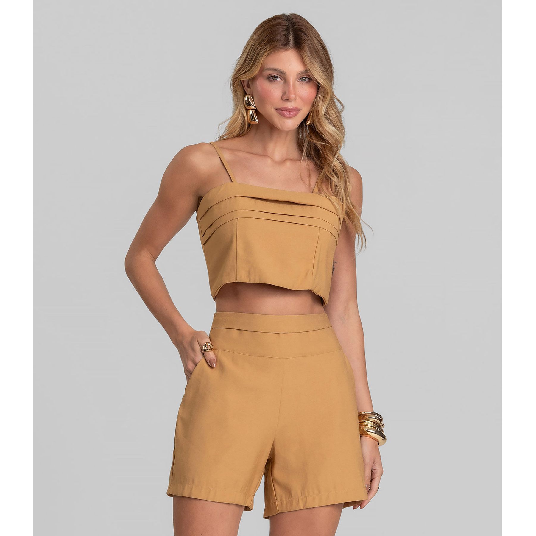 Shorts Feminino Cós Largo Em Alfaiataria Dianna Marrom