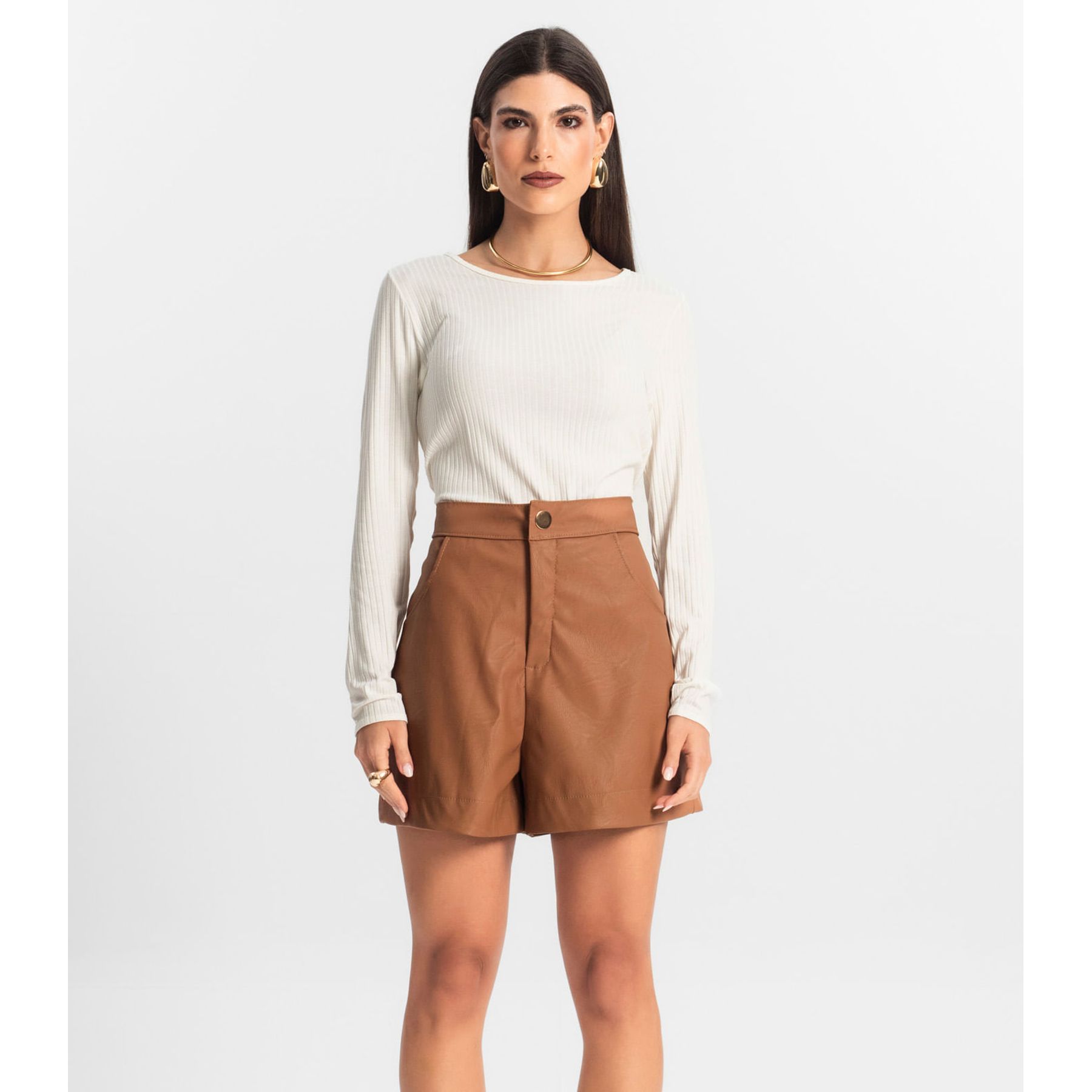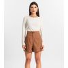 Shorts Feminino Cós Alto Em Alfaiataria Dianna Marrom