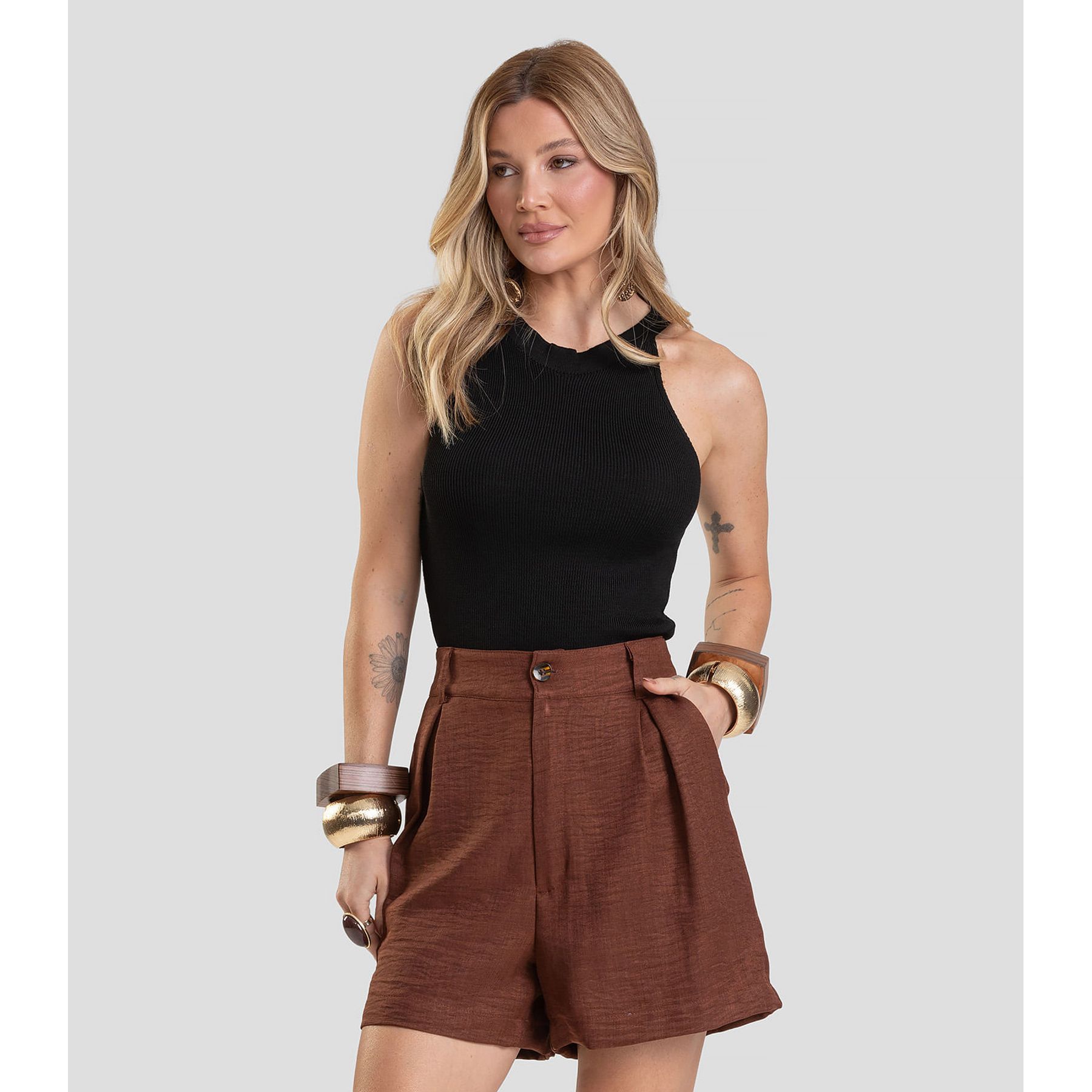 Short Feminino Curto Cós Alto Liso Preto - Norton