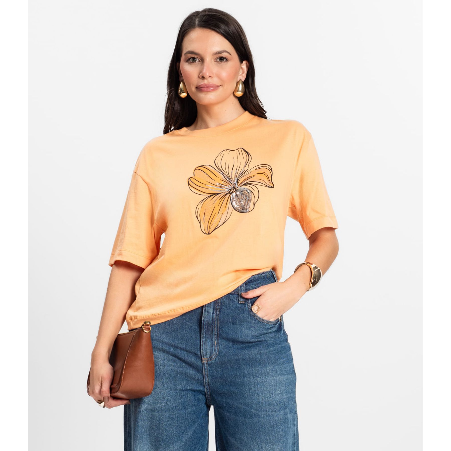 Blusa Feminina Manga Curta Infinita Cor Bege
