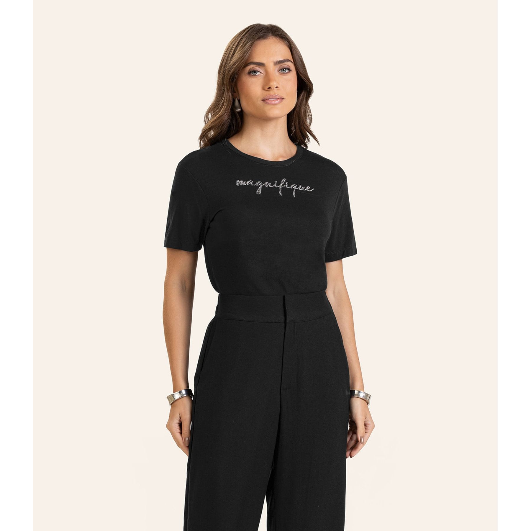 Camiseta Feminina Com Estampa e Rebite Dianna Preto