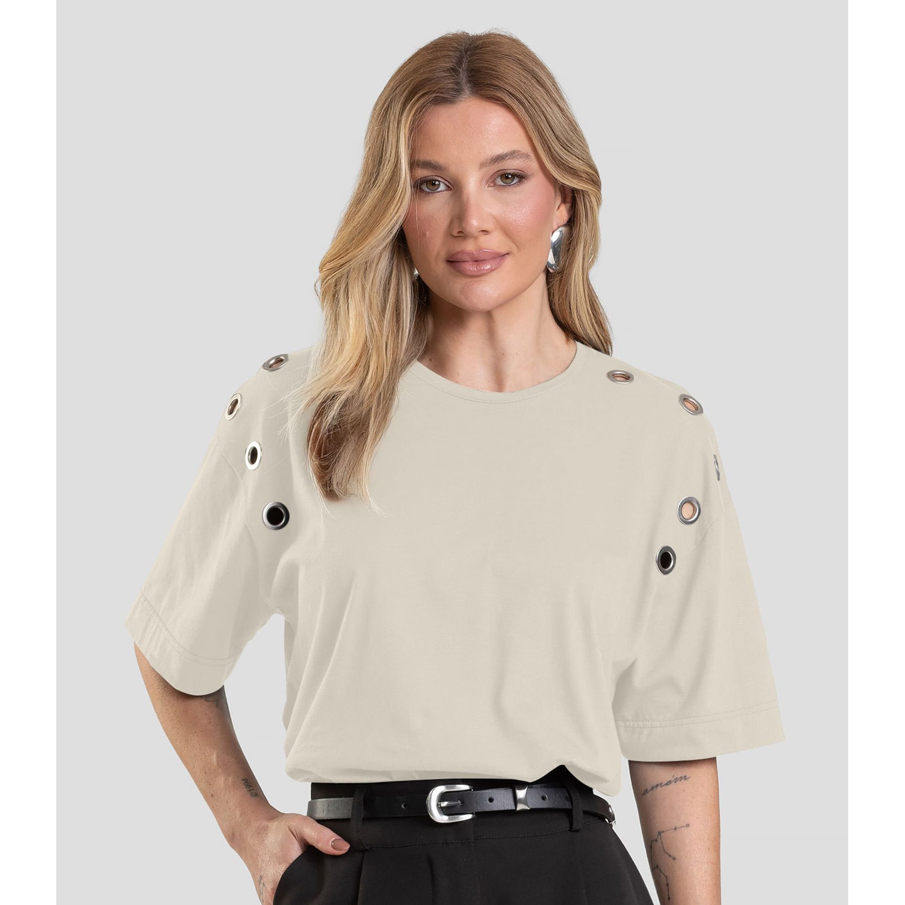 Blusa Feminina Manga Curta em Ribana Endless Bege
