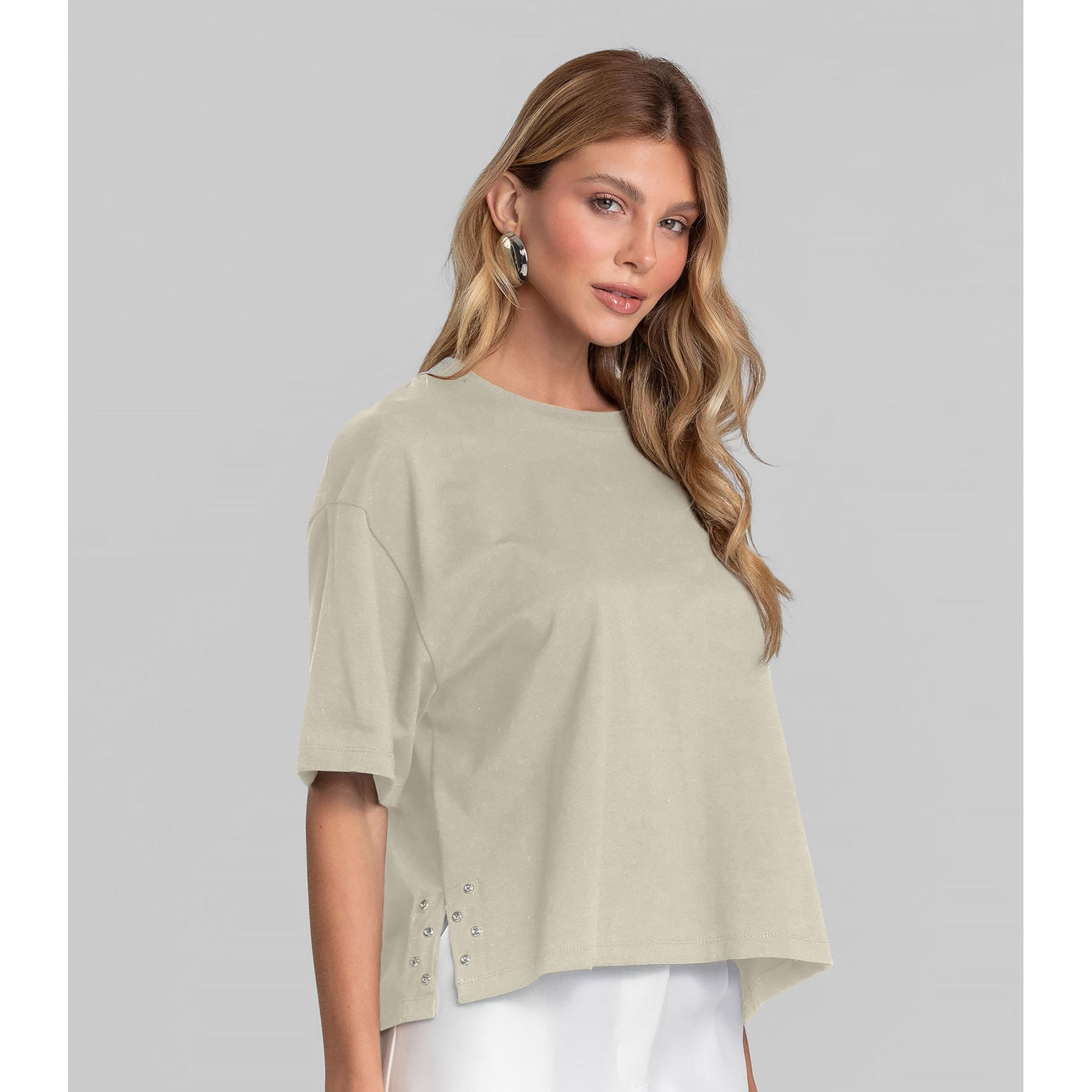 Blusa Feminina Manga Curta Infinita Cor Bege