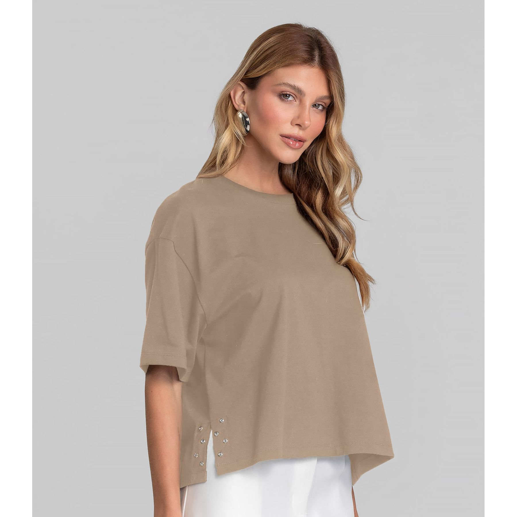 Blusa Feminina Manga Curta Infinita Cor Bege