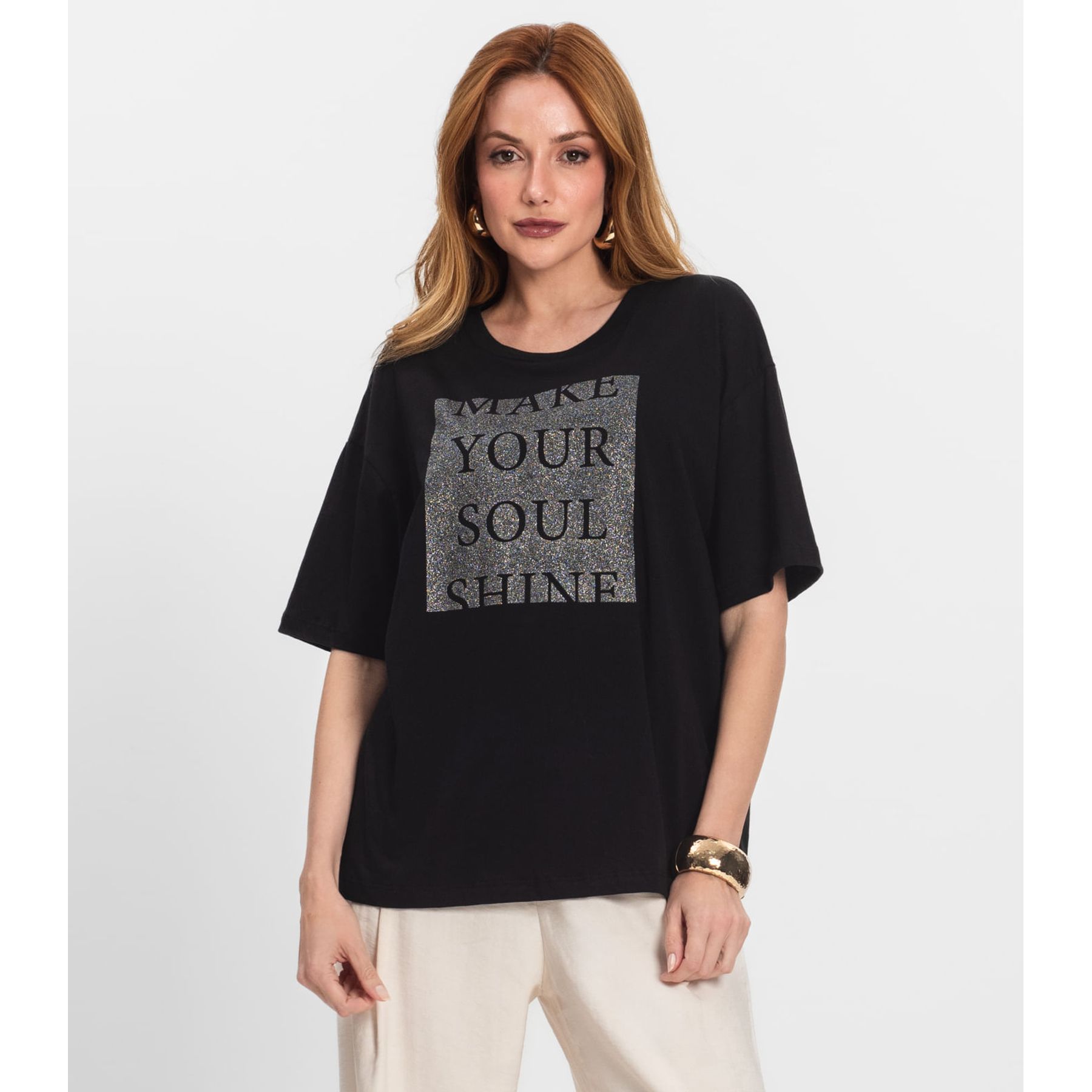 Blusa Feminina Manga Curta em Ribana Endless Preto