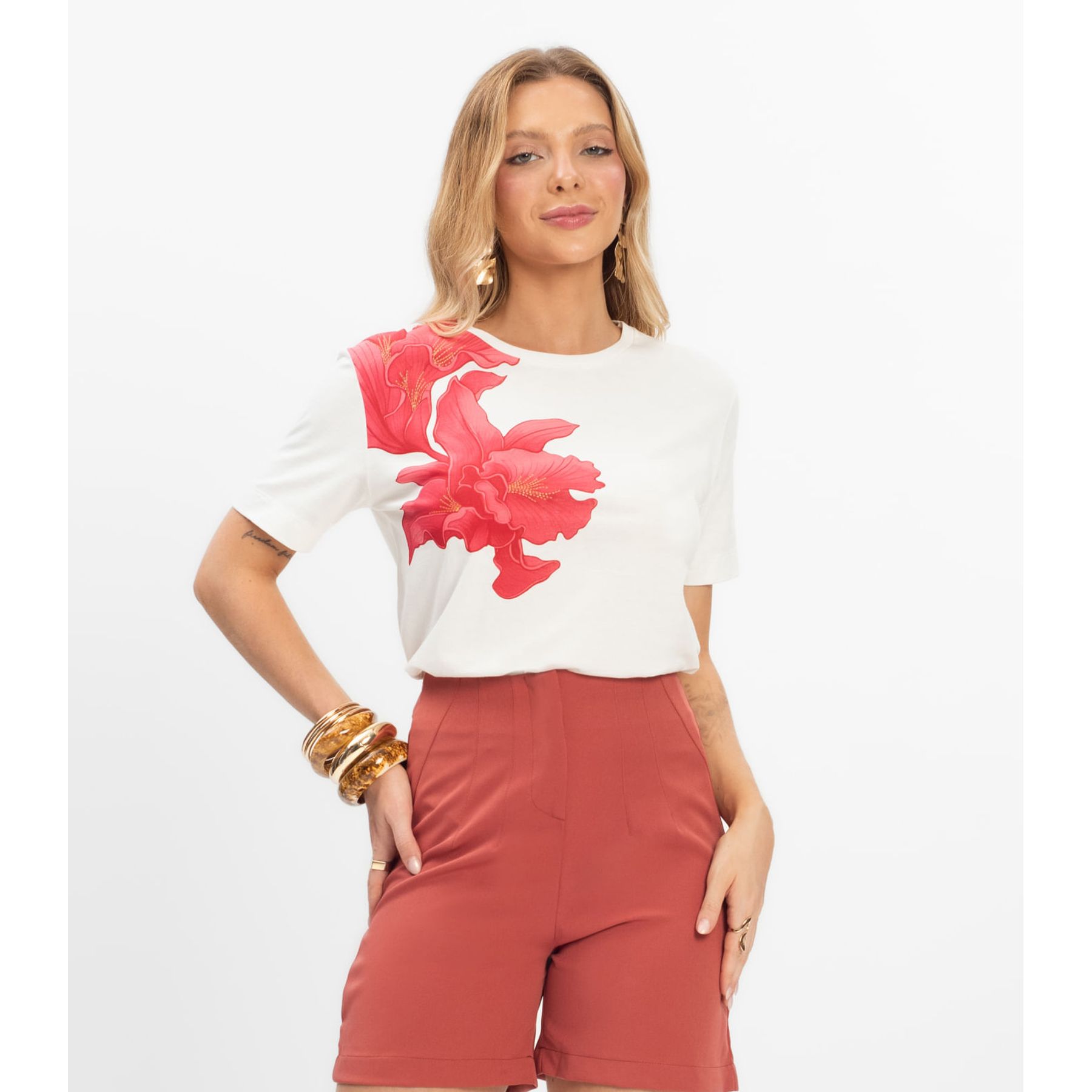 Blusa Feminina Manga Curta Infinita Cor Bege