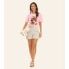 Blusa Feminina Manga Curta Infinita Cor Bege
